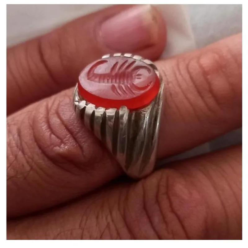 انگشتر نقره عقیق یمنی حکاکی با کمانچه نقش قدیمی به شکل عقرب زیرخاکی و کمیاب اهل فن دقیقا قیمت چقدر این نوع انگشتر واقعا میدونن