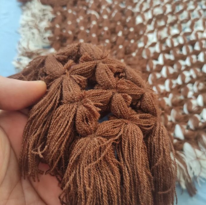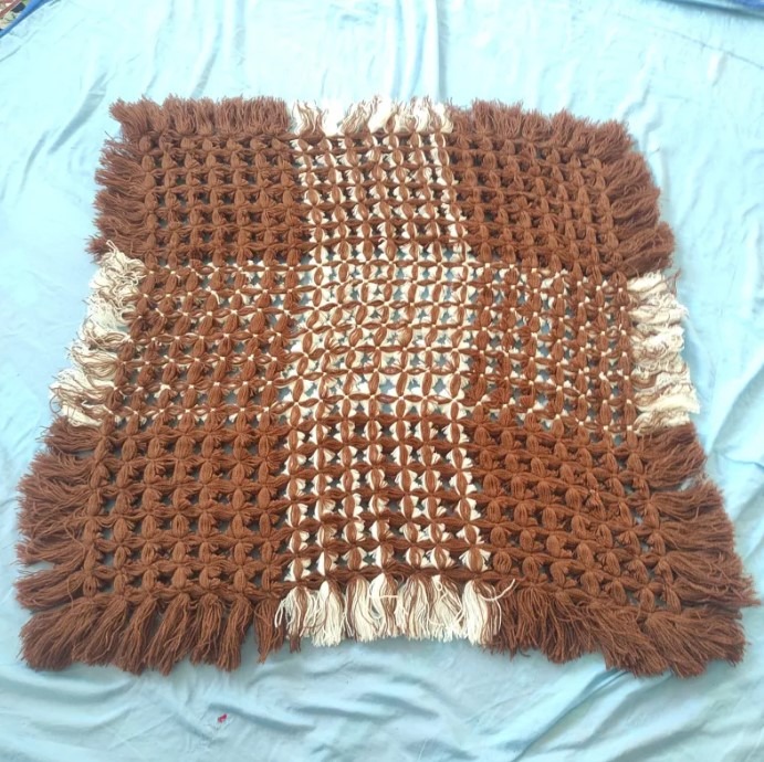 رومیزی دستباف جنس کاموا قهوه ای