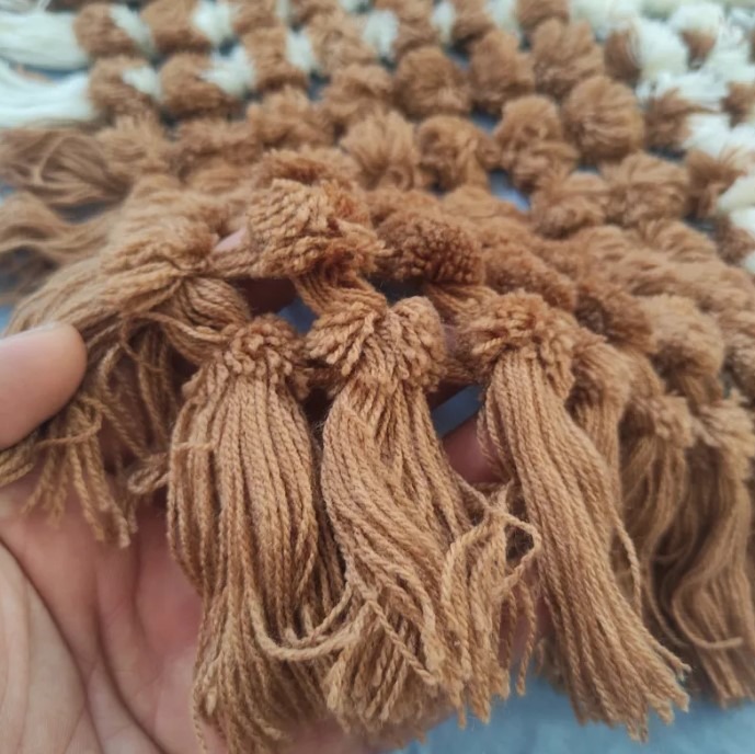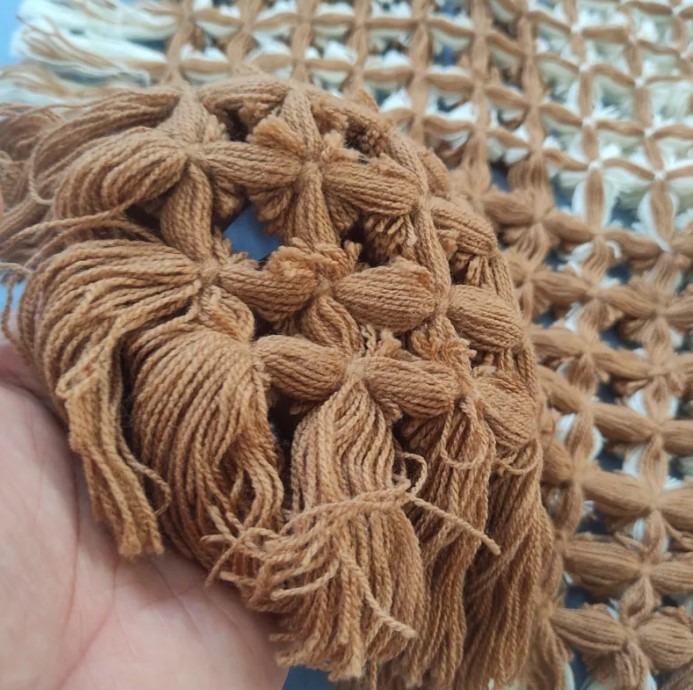 رومیزی دستباف جنس کاموا 7070 قهوه ای روشن