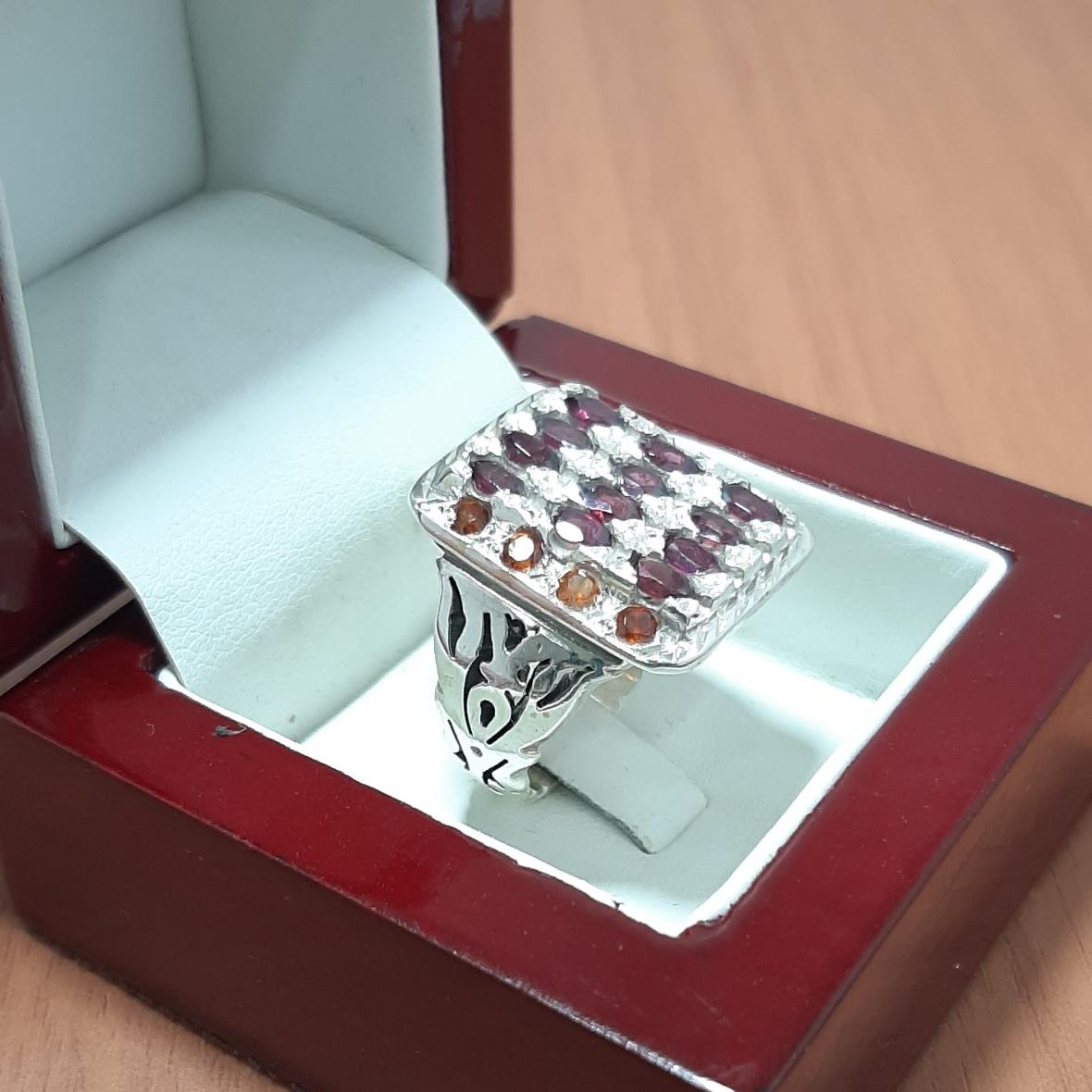انگشتر نقره با نگین یاقوت سرخ و زرد کد 18003