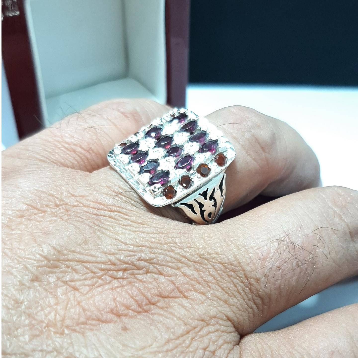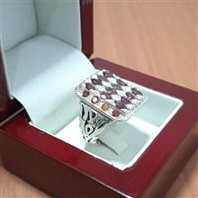 انگشتر نقره یاقوت (سرخ و زرد) رکاب جواهری (مخراجی)
