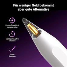 دقت پیکسل بالاتر قلم آیپد دارای یک تراشه با کارایی بالا برای دقت پیکسل بالاتر است و مانند قلم اصلی آزادانه و بدون هیچ گونه افت یا تأخیری مینویسد. نوک قلم دارای هسته مسی است که انتقال سیگنال را برای حرکات نرمتر و نوشتن روانتر بهبود میبخشد. با 3 نوک جایگزین اضافی ارائه میشود و نوک مداد با نوکهای آیپد سازگار است.