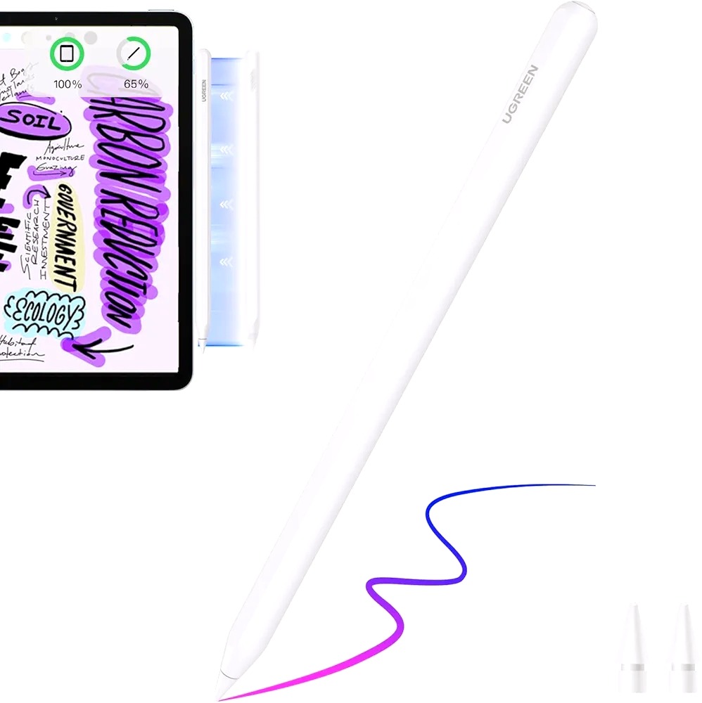 قلم UGREEN برای آیپد نسل دوم، شارژ بیسیم مغناطیسی، شارژ سریع، عملکرد، حساسیت به کج شدن، عدم پشتیبانی از کف دست، مداد استایلوس برای آیپد پرو 11 اینچ، 4/3/2/1 اینچ، 12.9 اینچ، 6/5/4/3 اینچ، آیپد ایر 4/5، آیپد