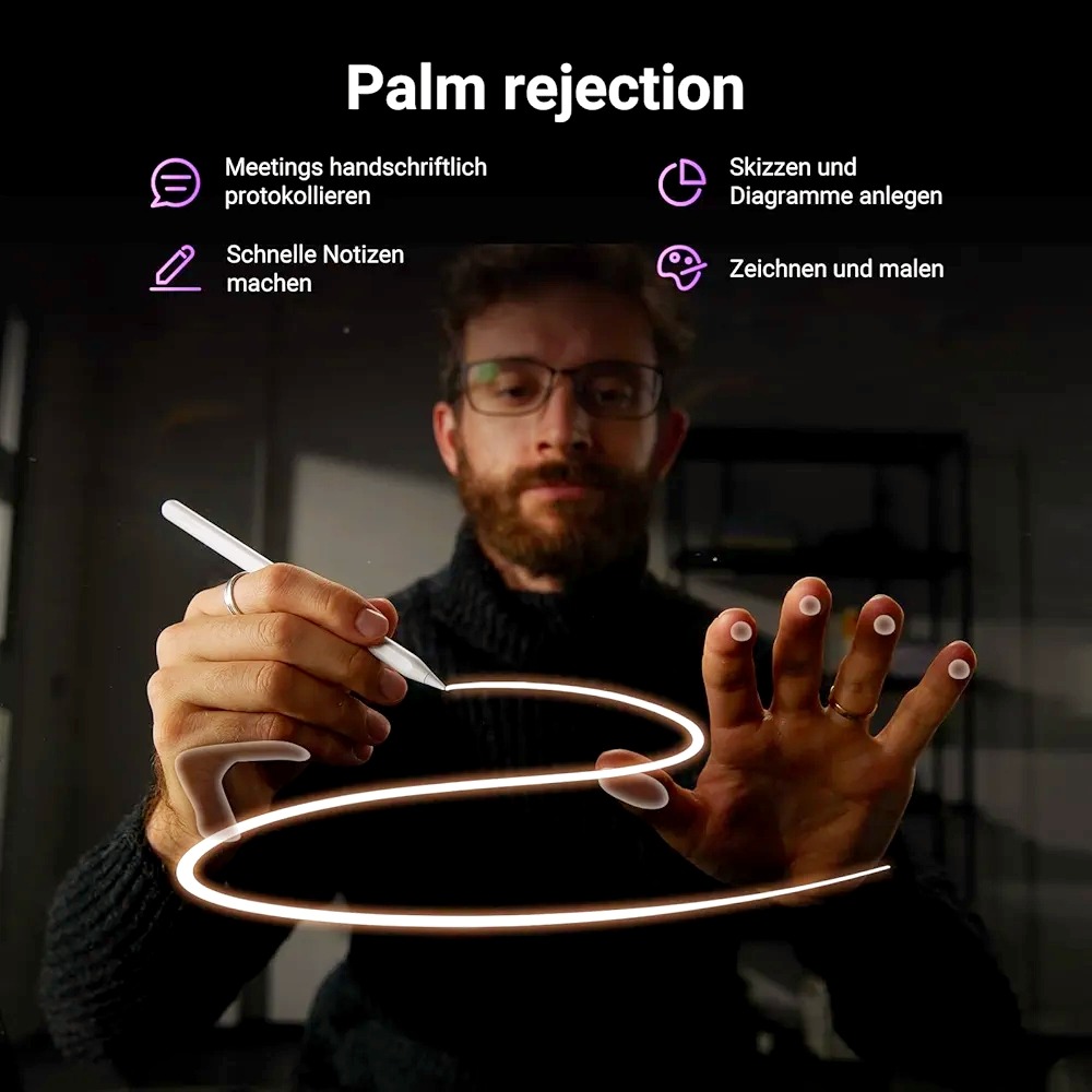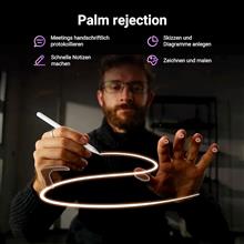 تشخیص کف دست و حساسیت به شیب حساسیت به شیب به شما این امکان را میدهد که بسته به زاویه، خطوطی با ضخامتهای مختلف روی صفحه نمایش بکشید و پشتیبانی کامل از تشخیص کف دست به شما امکان تایپ آزادانه و تجربه تایپ واقعی را میدهد. نوک 1.5 میلی متری میتواند جزئیات ظریف تری را بدون تأخیر، وقفه یا از دست دادن کیفیت، پردازش کند.
