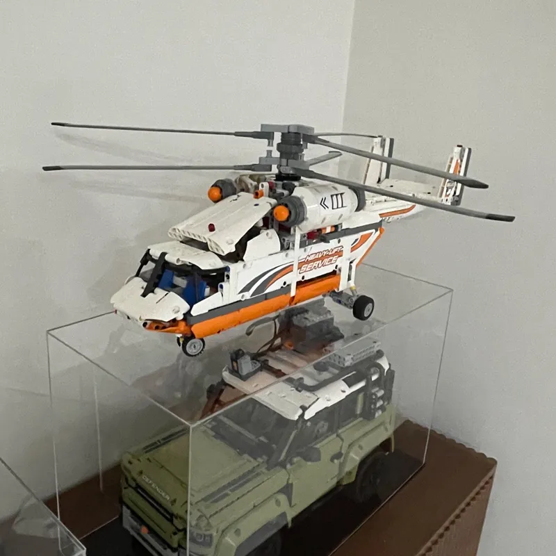 یکی از لگوهای افسانه ای از شرکت دانمارکی لگو ، این لگو به دو شکل ساخته میشه ، مدل اول چیزی هست که تو عکس میبینید و مدل دوم به صورت دو پروانه ،جعبه و دفترچه و یه سری اقلام اضافه اون موجوده ، به شدت ازش مراقبت شده و در وضیعت عالی هست ، قلب تپنده این هیلکوپتر یک موتور سایز M هست که قدرت چرخیدن ملخ ها و باز و بسته شدن در عقب و درب زیر هیلکوپر رو بهتون میده و حتی جرثقیل که از داخل( زیر )هیلیکوپتر خارج میشه رو هدایت میکنه ! پس چهار مدل بهتون فانکشن میکانیکی میده ،پره ها ،درب زیر و عقب و جرثقیل اون !
