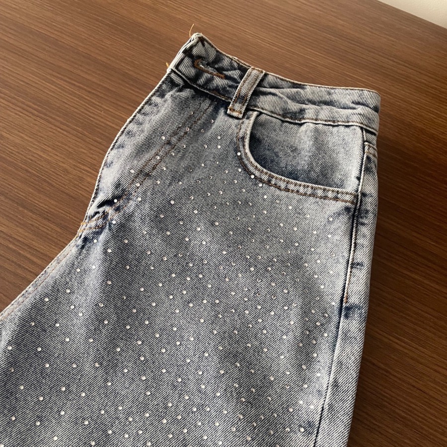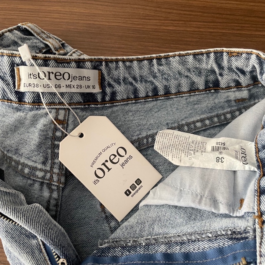شلوار جین فول نگین زنانه، برند اوریو ترک، چون شلوار در حد نو واقعی واقعی هست، حتی اتیکتش هم موجود هست ، سایز 38، تراکم نگینها در قسمت ران بیشتر و به سمت دمپا کمتر میشه، به دلیل برش هفتی پشت شلوار کاملا روی بدن می خوابه و بسیار خوش فرمه، مدل مام ،رنگ بسیار شیک،فقط جلوی شلوار نگین کار شده، نگینها ریزش نداره، برای اطمینان از اصالت کار QR کد روی لیبل که در عکس هست رو سرچ بفرمایید