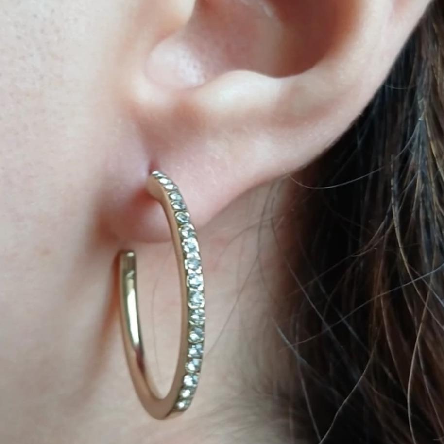 گوشواره  نیم حلقه نگین دار طلایی با قطر 3 سانتی متر