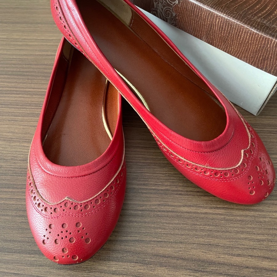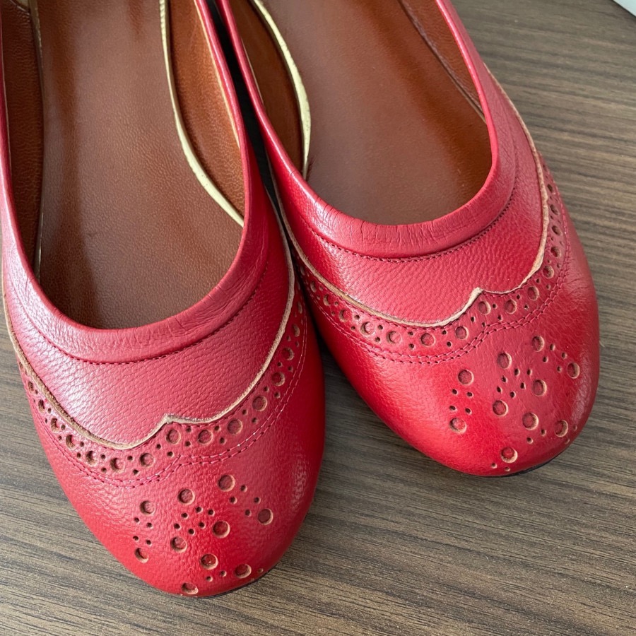 کفش عروسکی چرم قرمز، طرح و مدل خیلی ظریف و شیک، کاملا نو، سایز روش زده 37 ولی بیشتر مناسب سایز 36 یا 37 خیلی ظریف هست