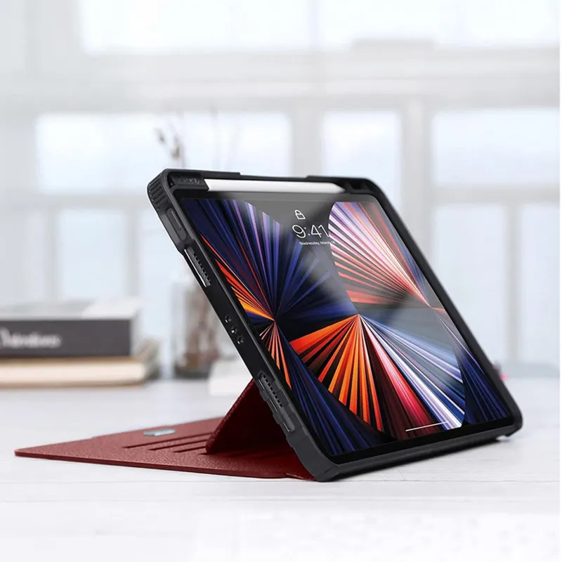 لطفا دقت کنید طراحی شده برای iPad Pro جدید 12.9 اینچ 2022/2021/2020 نسخه 6/5/4th Generation (مدل: A2436/A2437/A2764/A2766/A2766/A2378/A2629/A2378/A2369/A2378/A2422A 233/A2069/ A1876/A1895/A1983/A2014) توجه : مناسب هیچ مدل iPad دیگری نیست به جز لیست نوشته شده نیست . محافظت چندگانه بیرونی چرم سخت PC+ PU و قاب نرم TPU، با جذب و مقاومت در برابر سقوط ، ضربه و شوک ، محافظت چندگانه را ارائه می دهد . روکش نرم میکروفیبر از خراشیدگی تبلت شما جلوگیری می کند . 6 زاویه پایه مغناطیسی : پایه پایه مغناطیسی تا 6 زاویه ایمن قابل تنظیم است که خواندن، تماشای فیلم یا تایپ را راحت می کند . Magnetic همچنین به اندازه کافی قوی است که iPad شما را روی یخچال یا سایر سطوح فلزی نگه دارد . پوشش هوشمند مغناطیسی : روکش هوشمند مغناطیسی از عملکرد بیدار شدن و خواب خودکار پشتیبانی می کند . جذب مغناطیسی قوی تضمین می کند که دستگاه شما به راحتی و محکم به قاب متصل می شود و محافظت بیشتری برای iPad Pro شما ایجاد می کند . جا مداد اپل پشتیبانی از طراحی باریک از شارژ بی سیم مداد نسل دوم آیپد . جای مداد تعبیه شده که به راحتی می توانید مداد خود را بیرون بکشید و ذخیره کنید .  یا حق