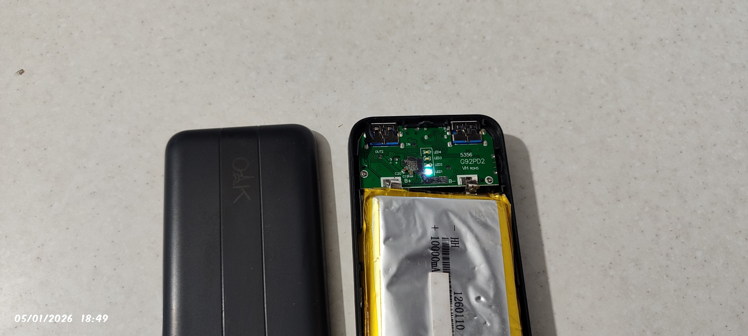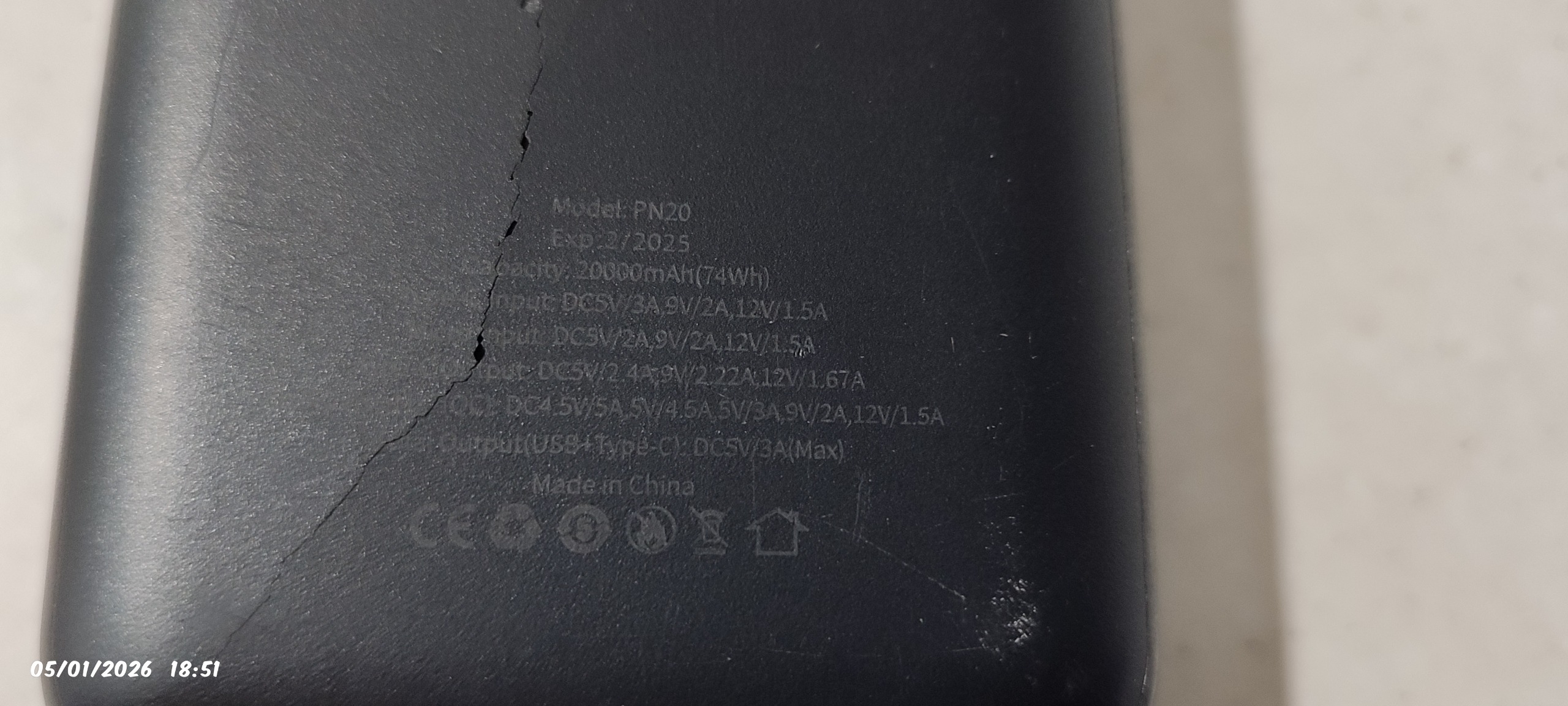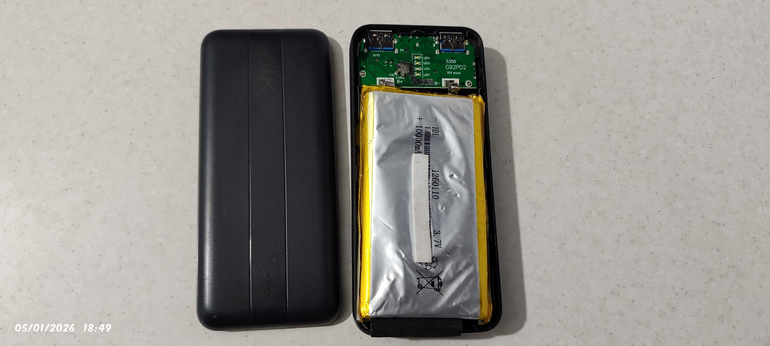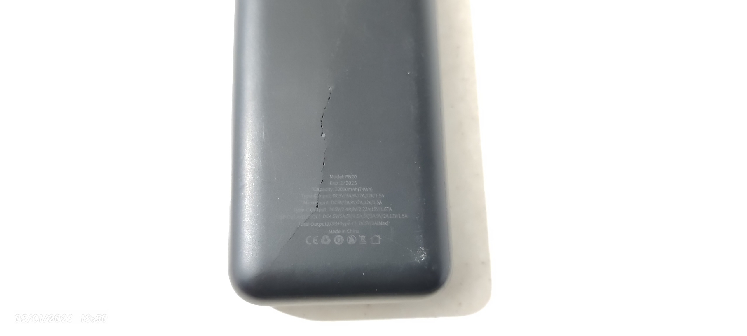 قاب پاوربانک چون باتری باد کرده بود به ترک رو قابش هست که توی عکس هم مشخصه