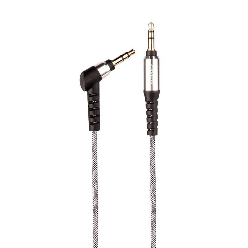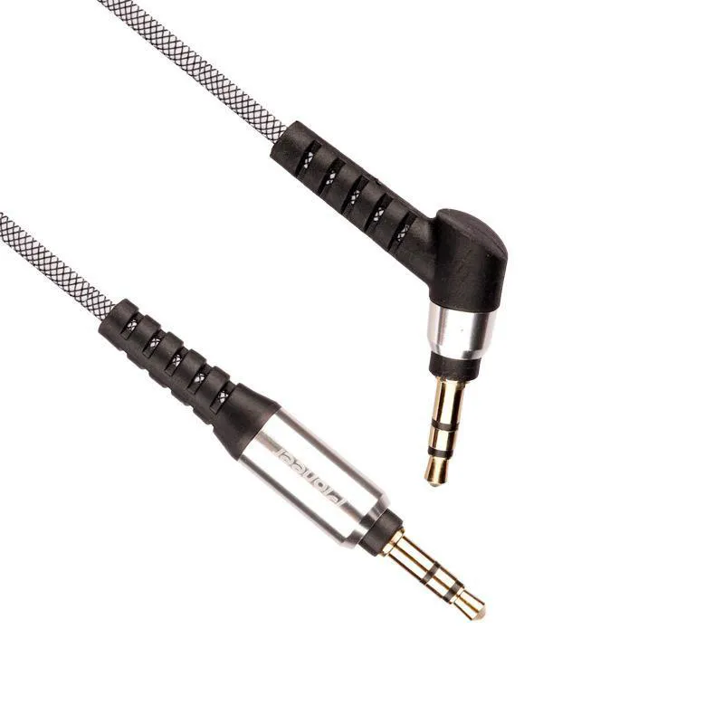 نوع رابط AUX (جک 3٫5 میلی متری صدا) قابل استفاده برای اتصال در دستگاه های صوتی مانند هدفون، ضبط خودرو و رابط از جنس فلز مقاوم در برابر فشار، سایش و سایر آسیب های فیزیکی با طراحی یکسر L با هدف سهولت در استفادهکابل به طول 150 سانتی متر با روکشی از جنس الیاف به هم بافته شده، مقاوم در برابر کشش و خمیدگی