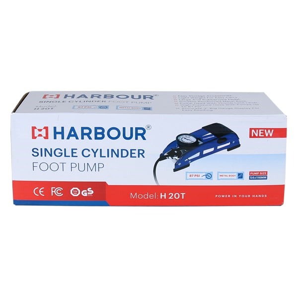تلمبه پایی H20T هاربر با طراحی مستحکم، قدرت پمپاژ بالا و ساختار ارگونومیک، یکی از بهترین گزینه ها برای باد کردن انواع لاستیک وسایل نقلیه، تجهیزات ورزشی و ابزارهای بادی محسوب می شود. این مدل از تلمبه با بهره گیری از یک سیلندر بزرگ آلومینیومی با قاب تمام استیل، عملکردی یکنواخت و قابل اطمینان در طول زمان ارائه می دهد.