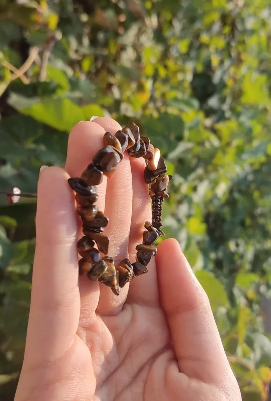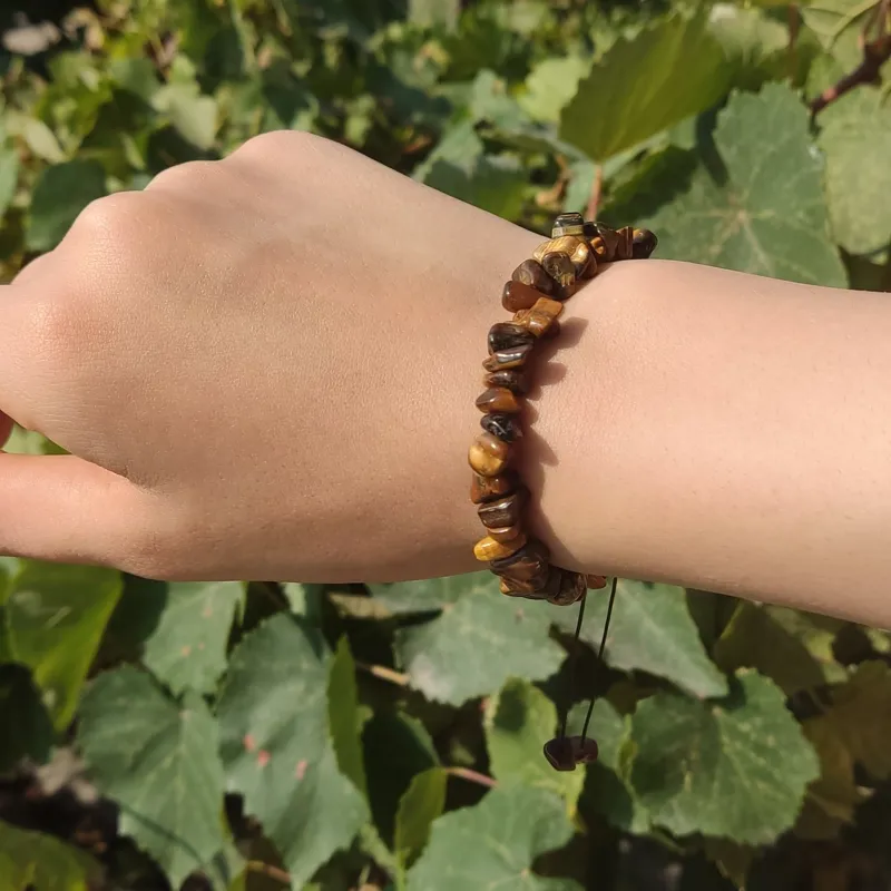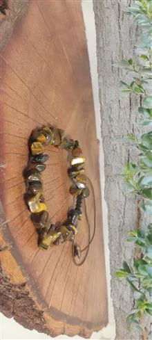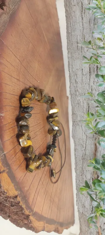 دستبند سنگی چشم ببر اصل معدنی با تراش نا منظم