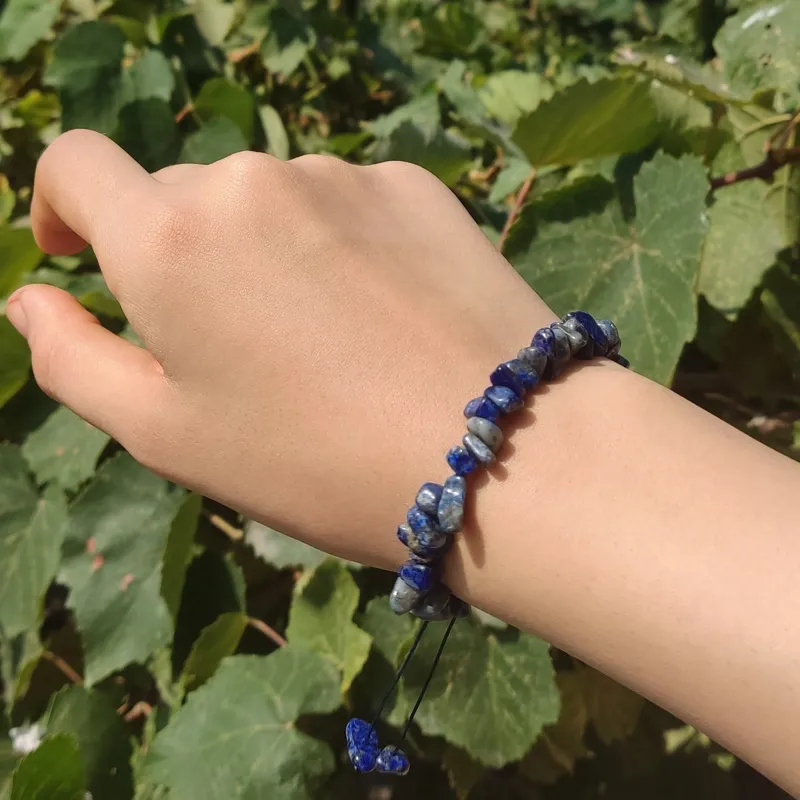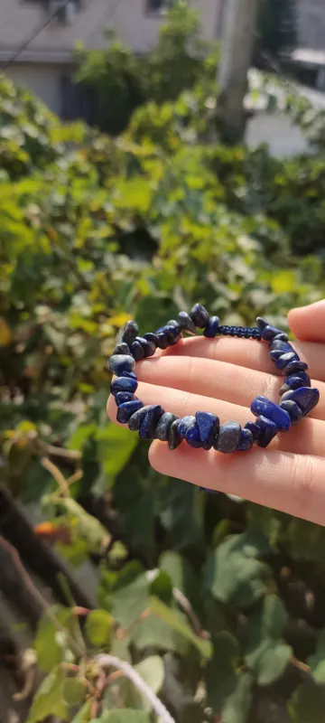 دستبند سنگی لاجورد اصل معدنی با تراش نامنظم