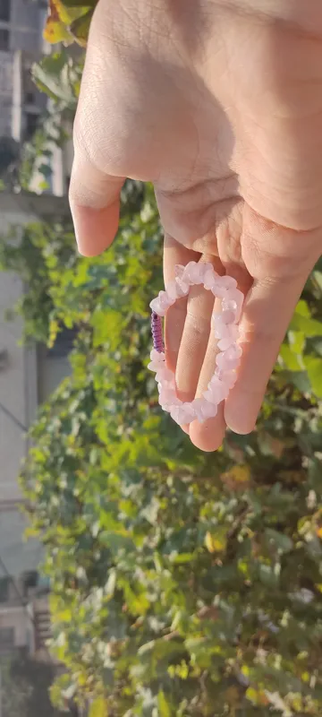 دستبند سنگی رز کوارتز اصل معدنی با بافت مکرومه