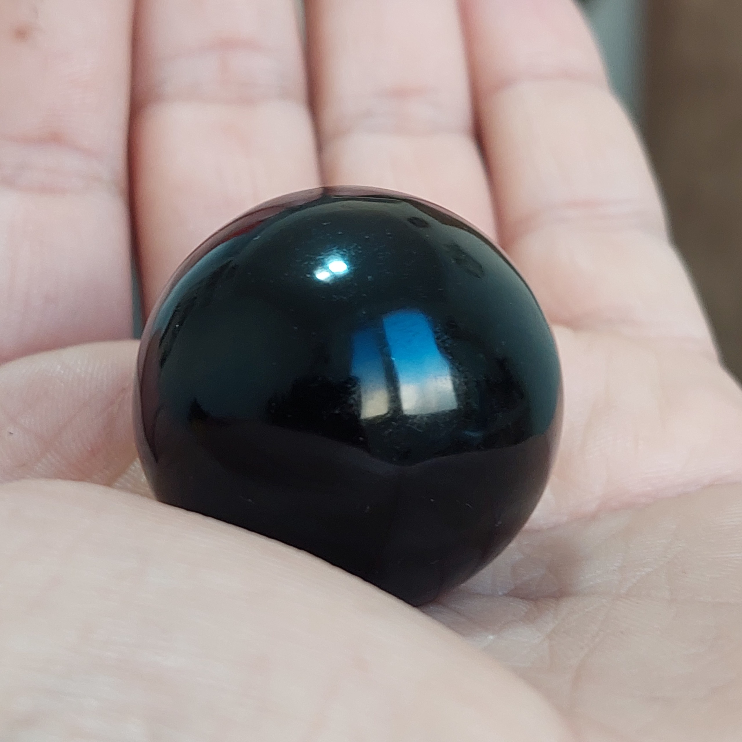 گوی 40 میلیمتری سنگ ابسیدین مشکی اصل تراش دست کاملا مشکی یک دست بدون کوچیکترین لکه