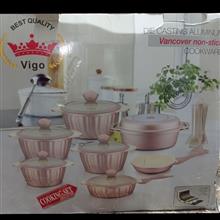 سرویس قابلمه اصل ویگو 20 پارچه همراه با سرویس کفگیر و ملاقه رنگ رزگلد
