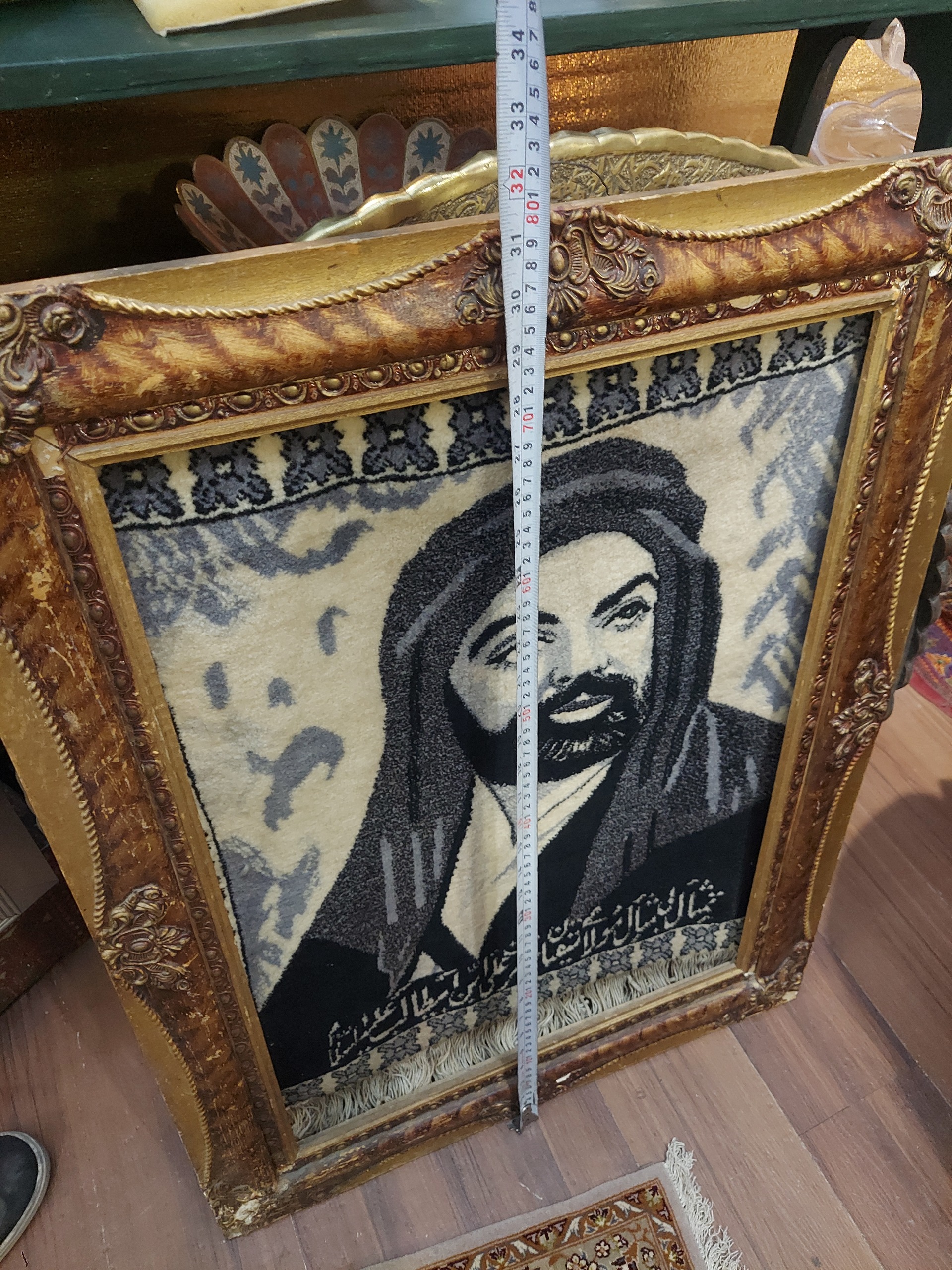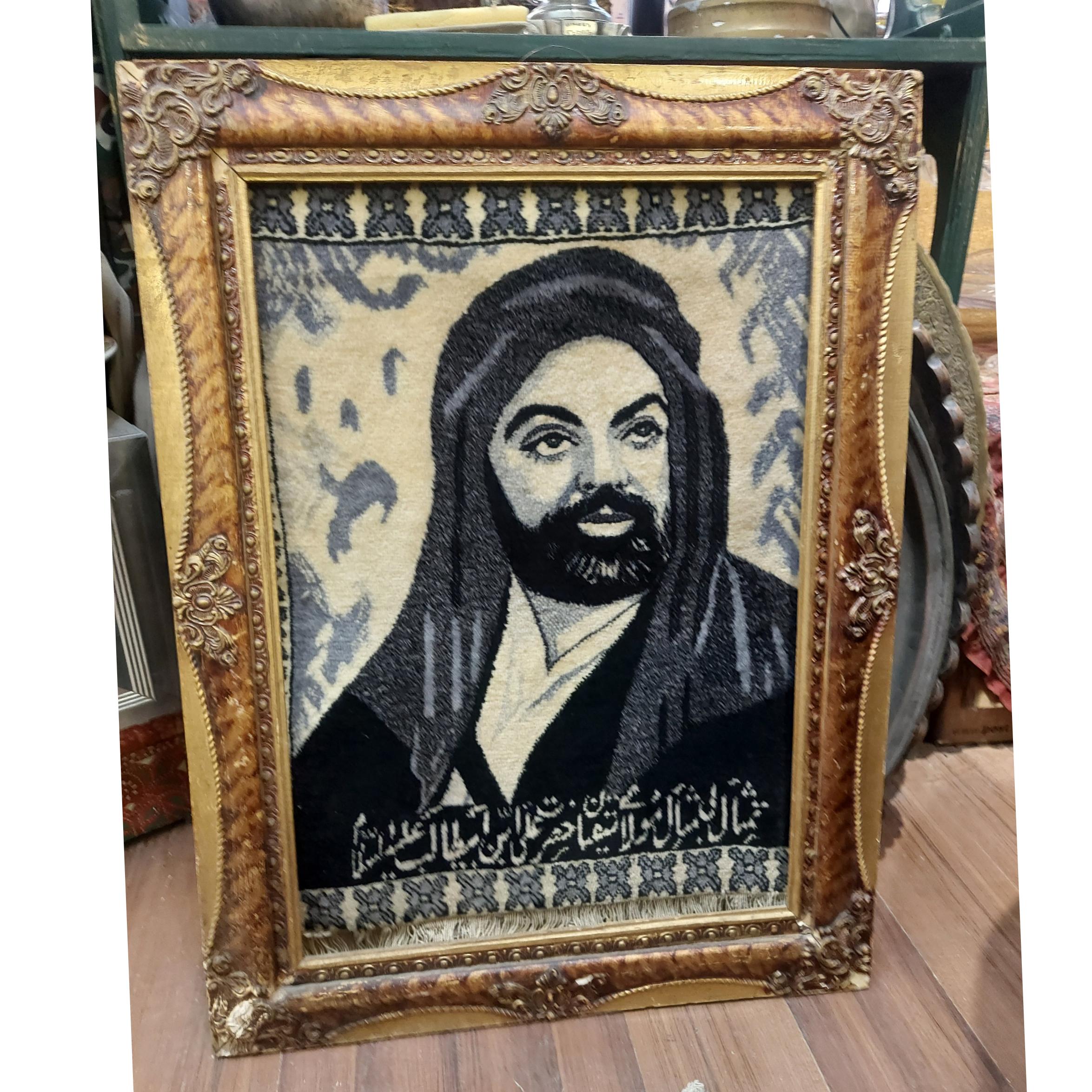 تابلو فرش یا قالی دستبافت قدیمی تمثال مبارک امام علی ع