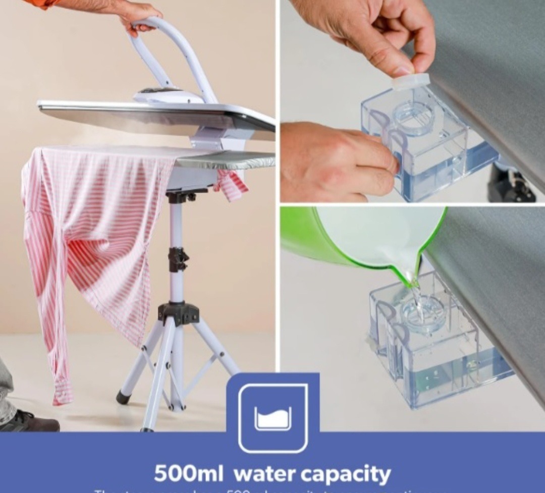 صفحه نمایش دیجیتال کنترل کاربر را افزایش میدهد. این دستگاه روشی ایمن و موثر برای تازه کردن لباسها و سایر اقلام شما برای مدت طولانی فراهم میکند. این دستگاه پرس بخار مجهز به مخزن آب 500 میلیلیتری، بخار مداوم را برای نتایج سریع و بهتر تولید میکند.