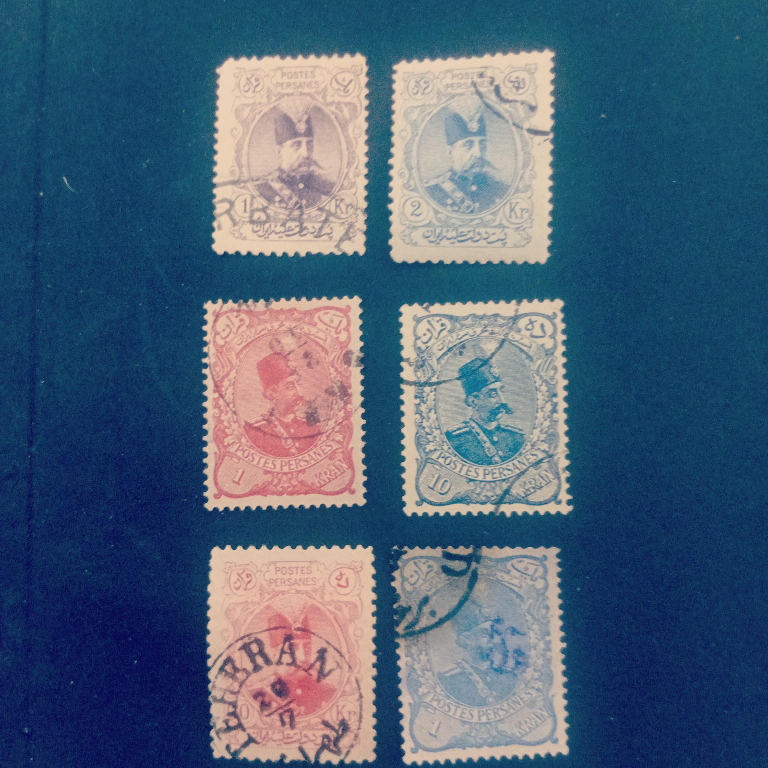 6 تمبر مظفری تمام رخ و نیم رخ با ارقام مختلف