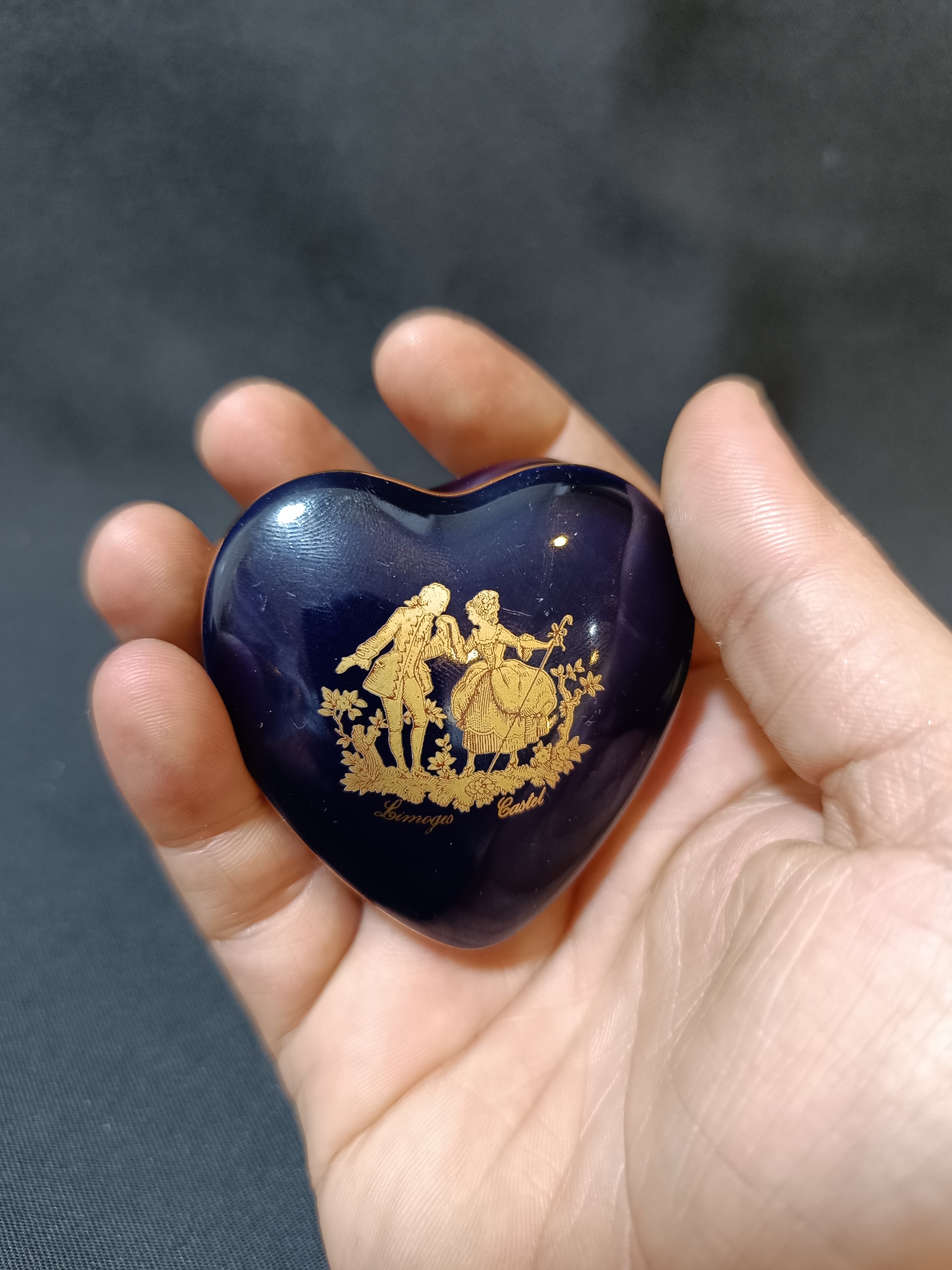 جا جواهری قلبی فرانسه قدیمی کاملاً سالم مارکدار و پشت کار حک شده داخل عکس آخر تماما طلاکوب هست با عیار 22