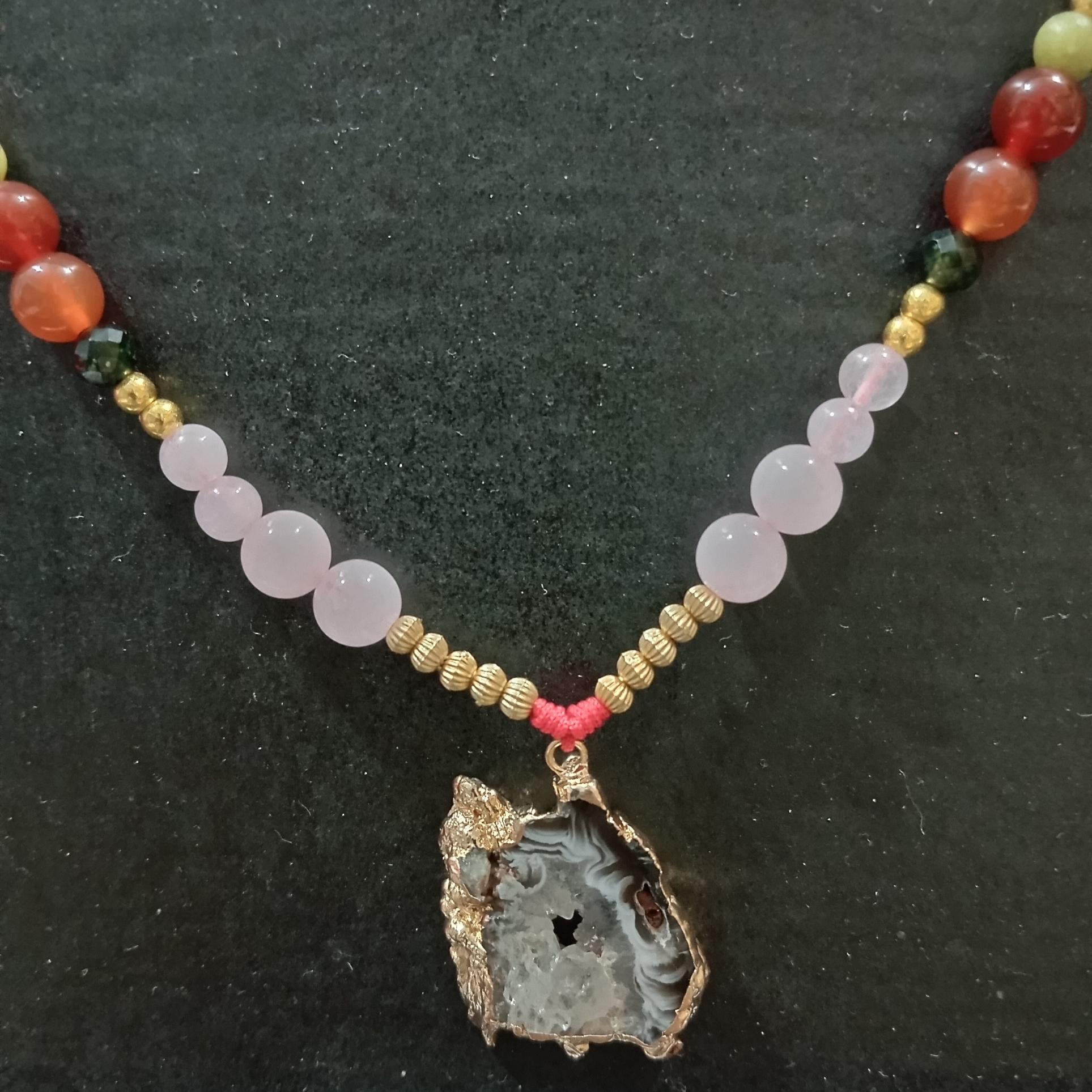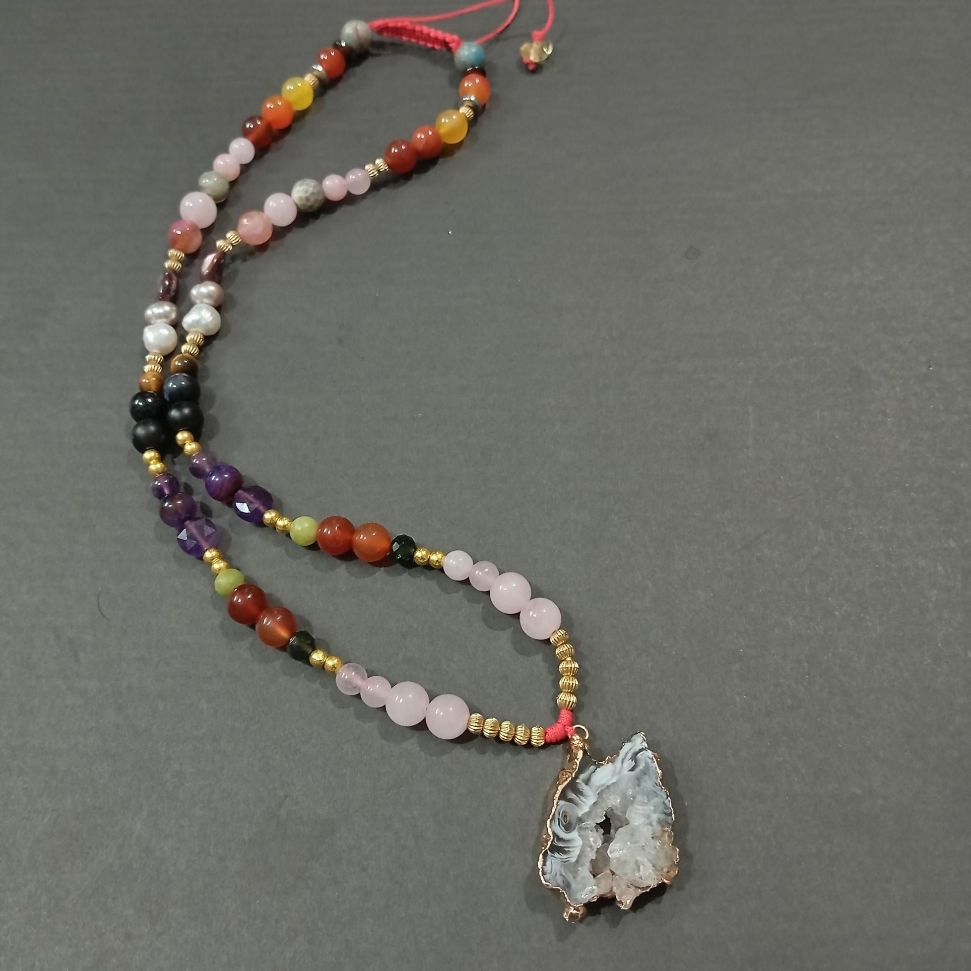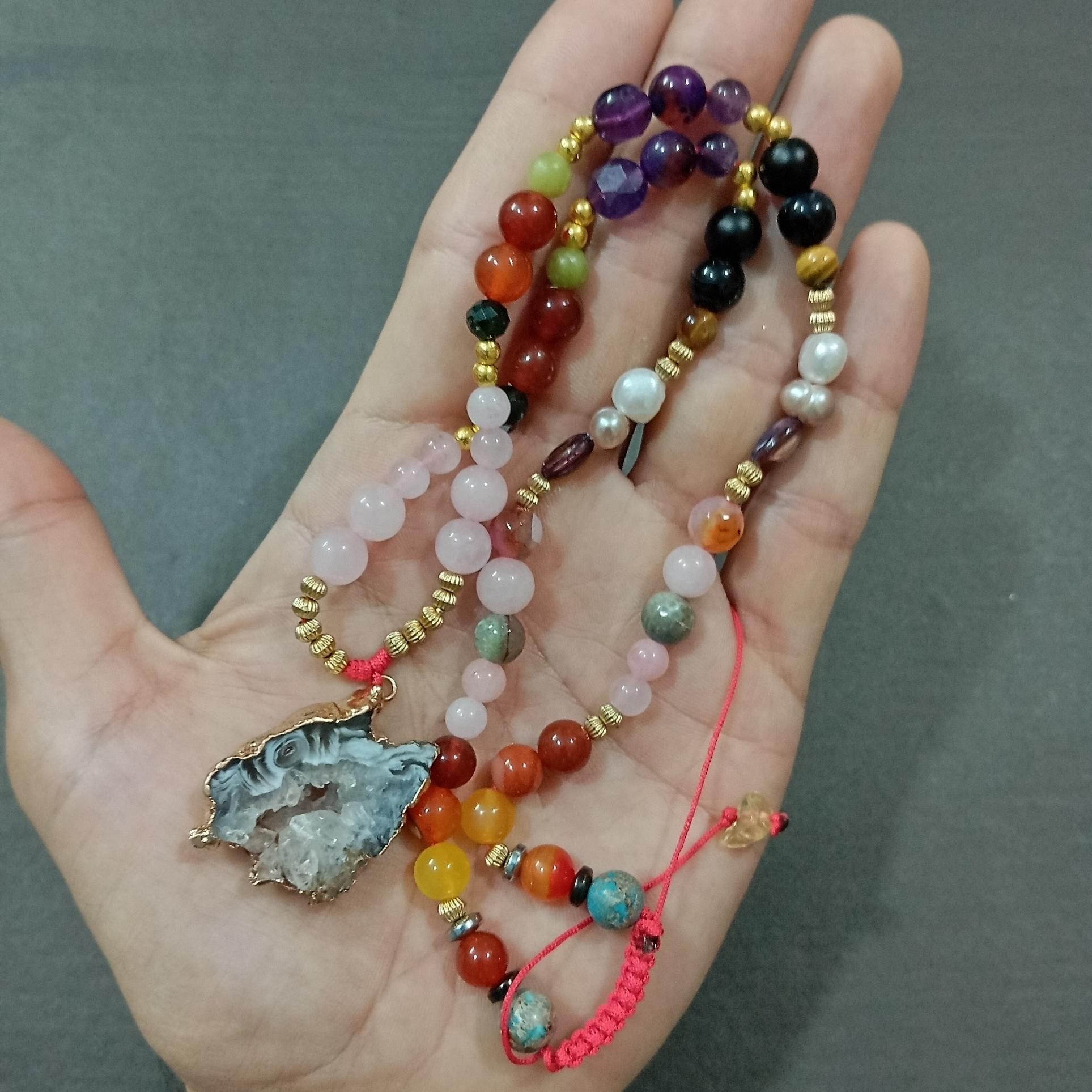 گردنی عقیق ژئود محافظ با مهره های طبیعی پرانرژی