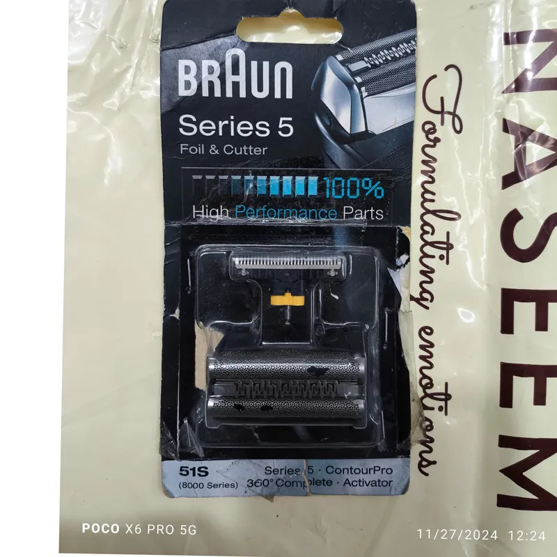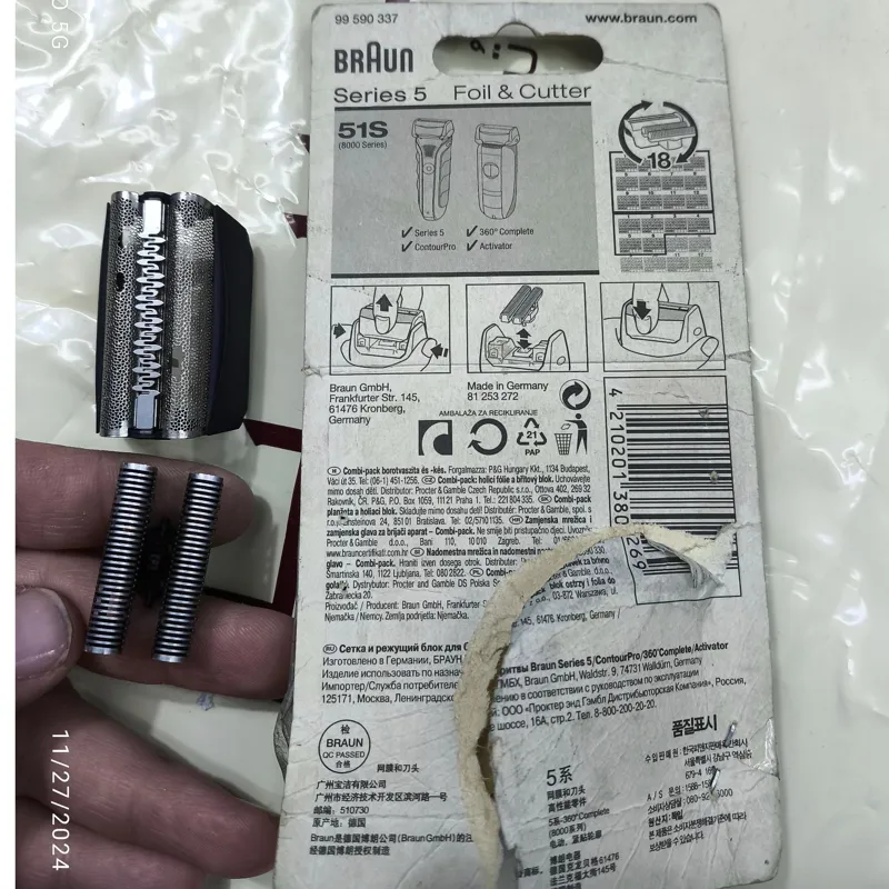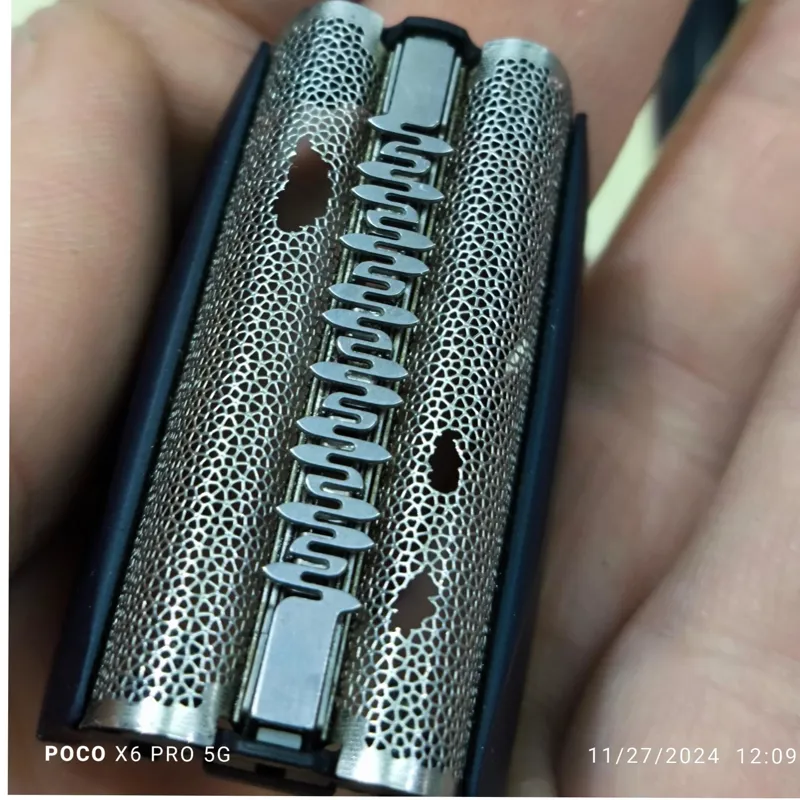 وقتتون بخیر باشه.تیغ و توری فابریکی روی دستگاه هستند که توری خراب شده و تیغه عالی عالی هست. ولی جفتشو عوض کردند مشتری. تیغه عالی درجه 1 قطعا بهتر از بسته بندی ها هست. توری قابل تعویض هست قسمت وسط توری سالم. بدنه توری سالم. آلمانی اصلی .با سپاس
