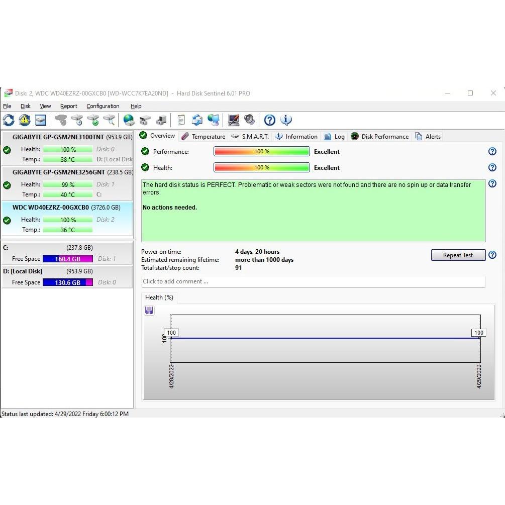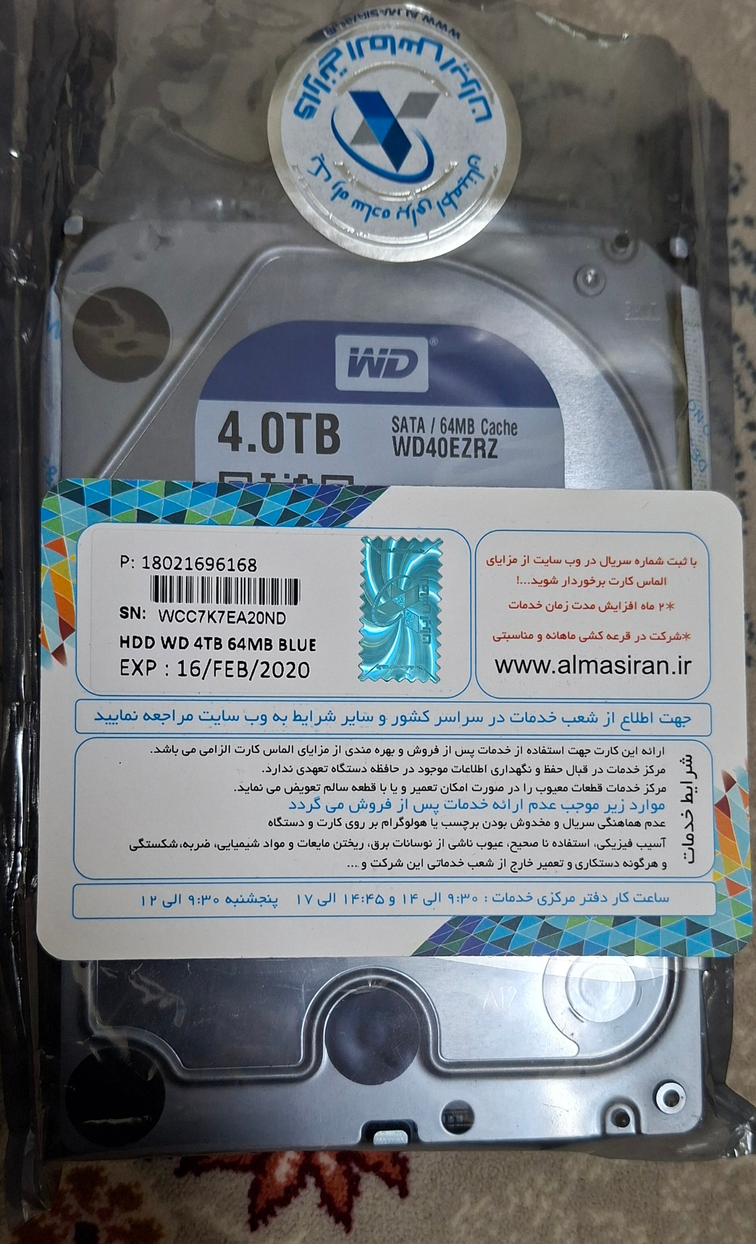 هارد وسترن دیجیتال آبی ظرفیت 4 ترابایت WD40EZRZ با 4 روز کارکرد