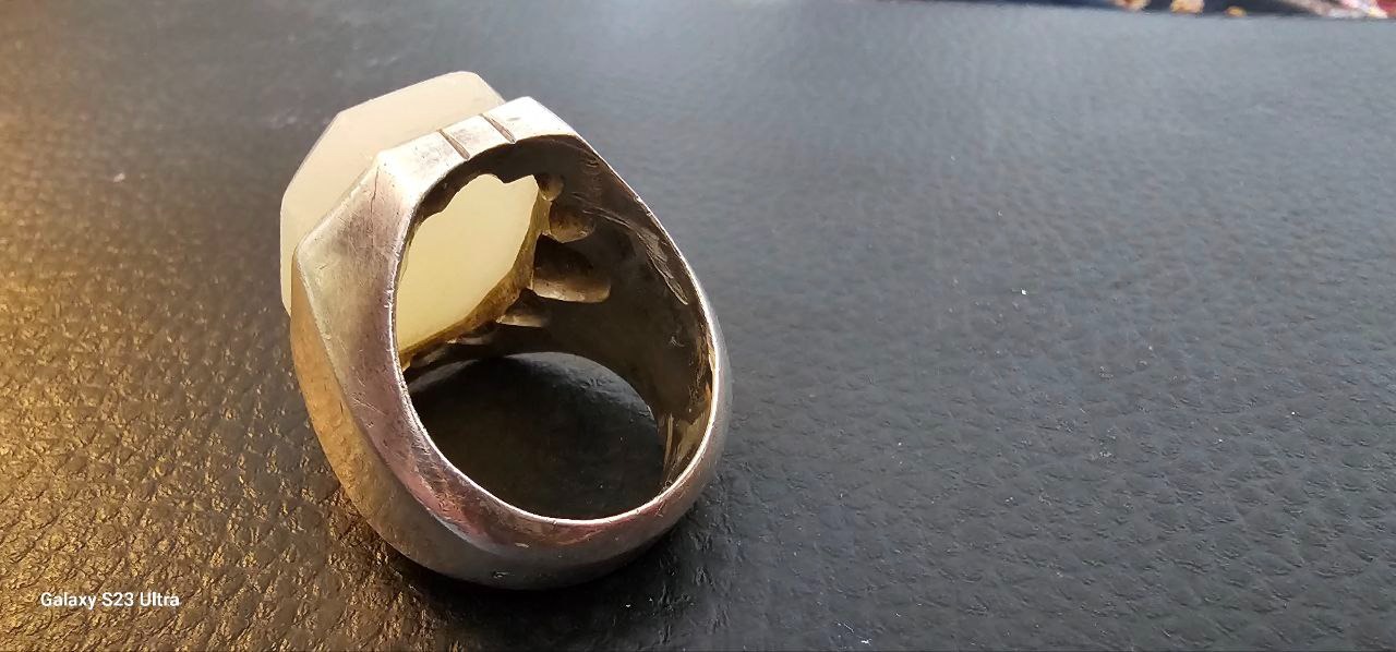 انگشتر یشم صابونی غول پیکر رکاب دستساز مهردار