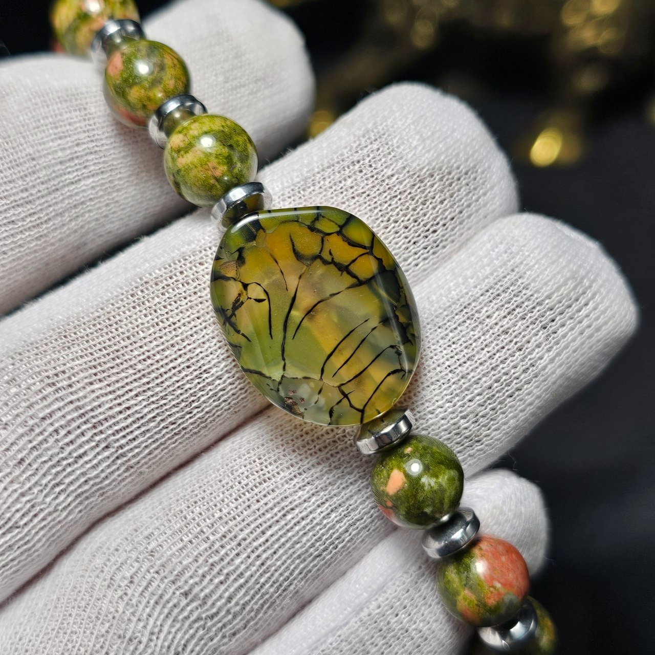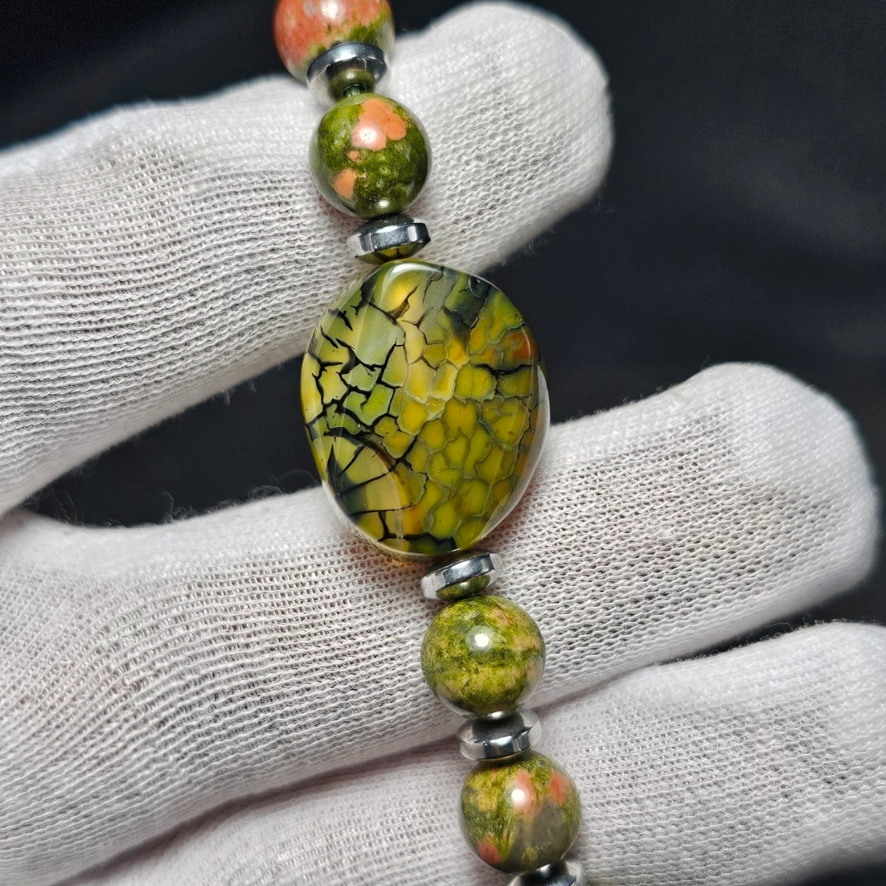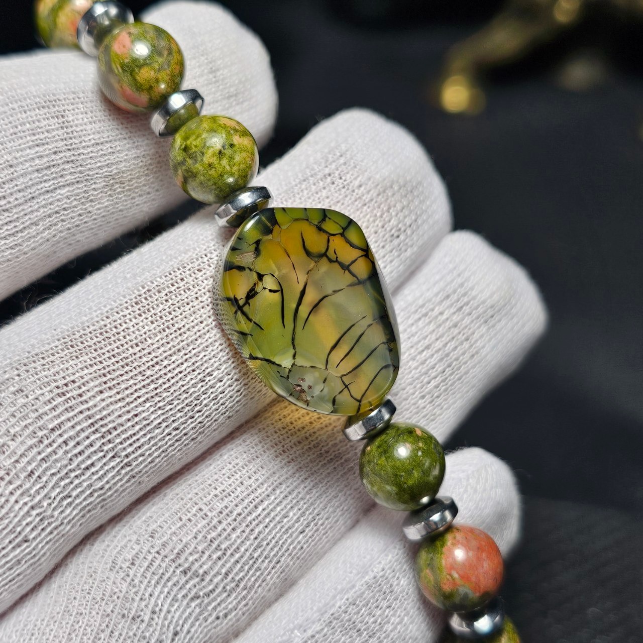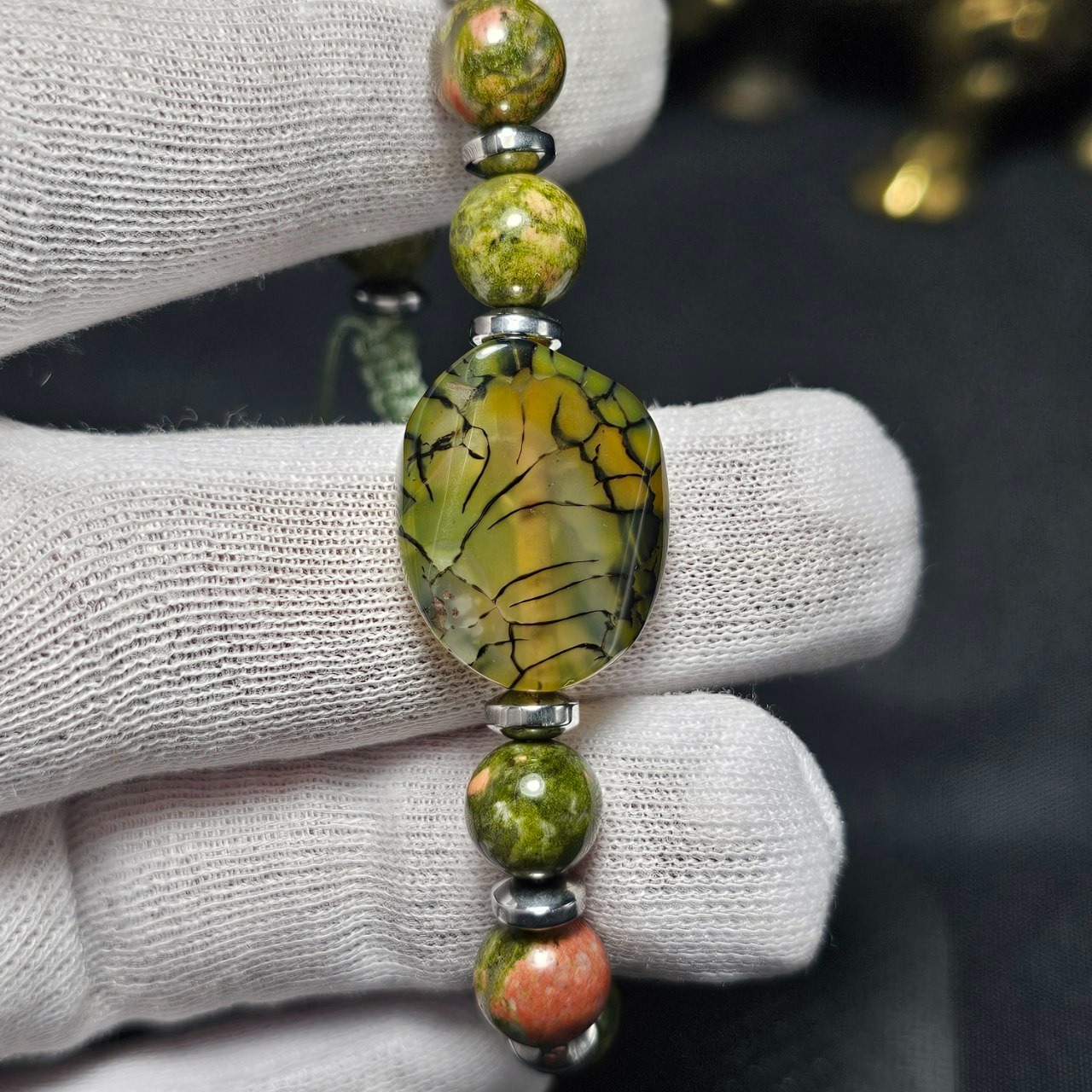 دستبند سنگ عقیق دراگون با مهره های اوناکیت معدنی