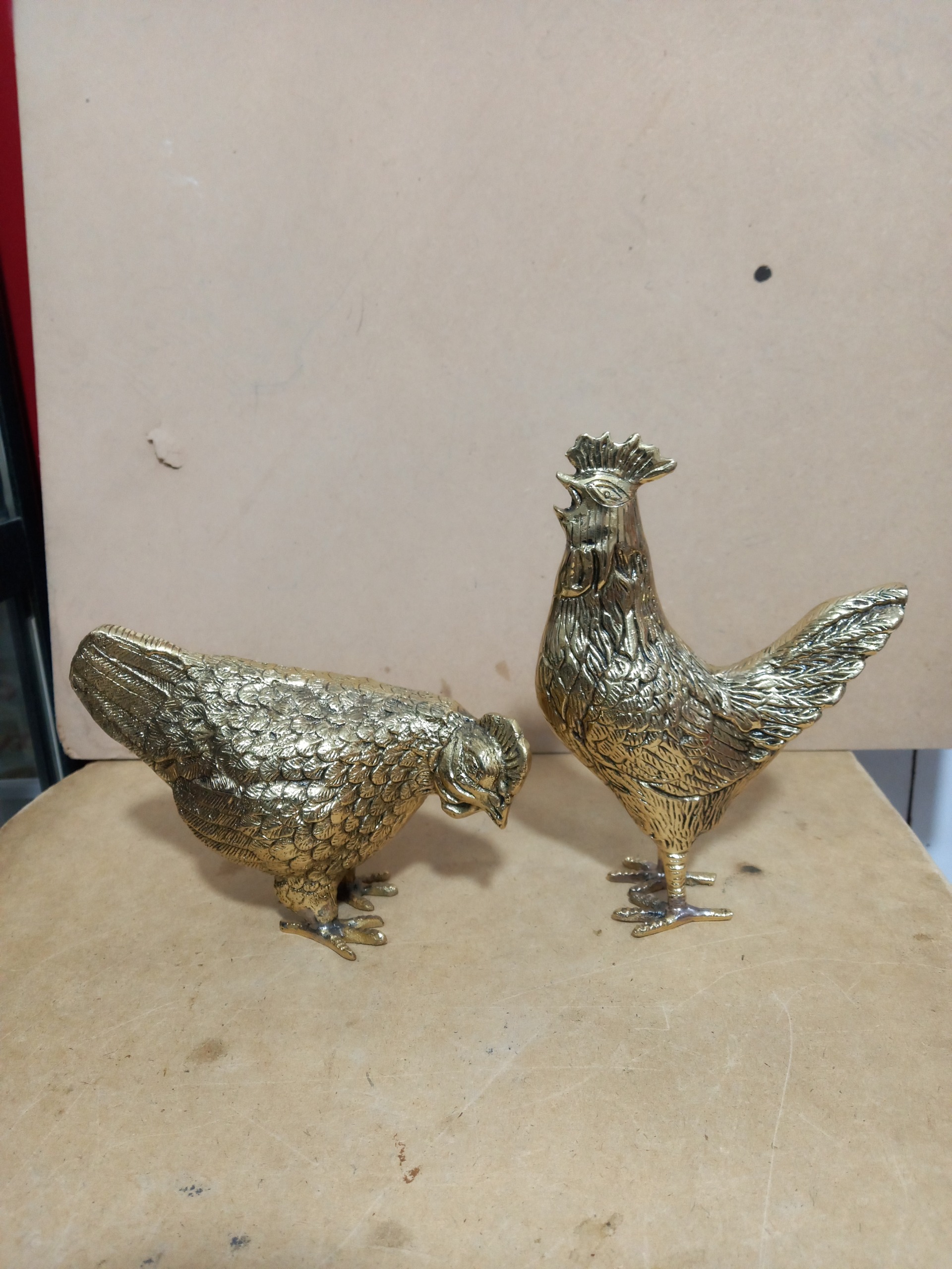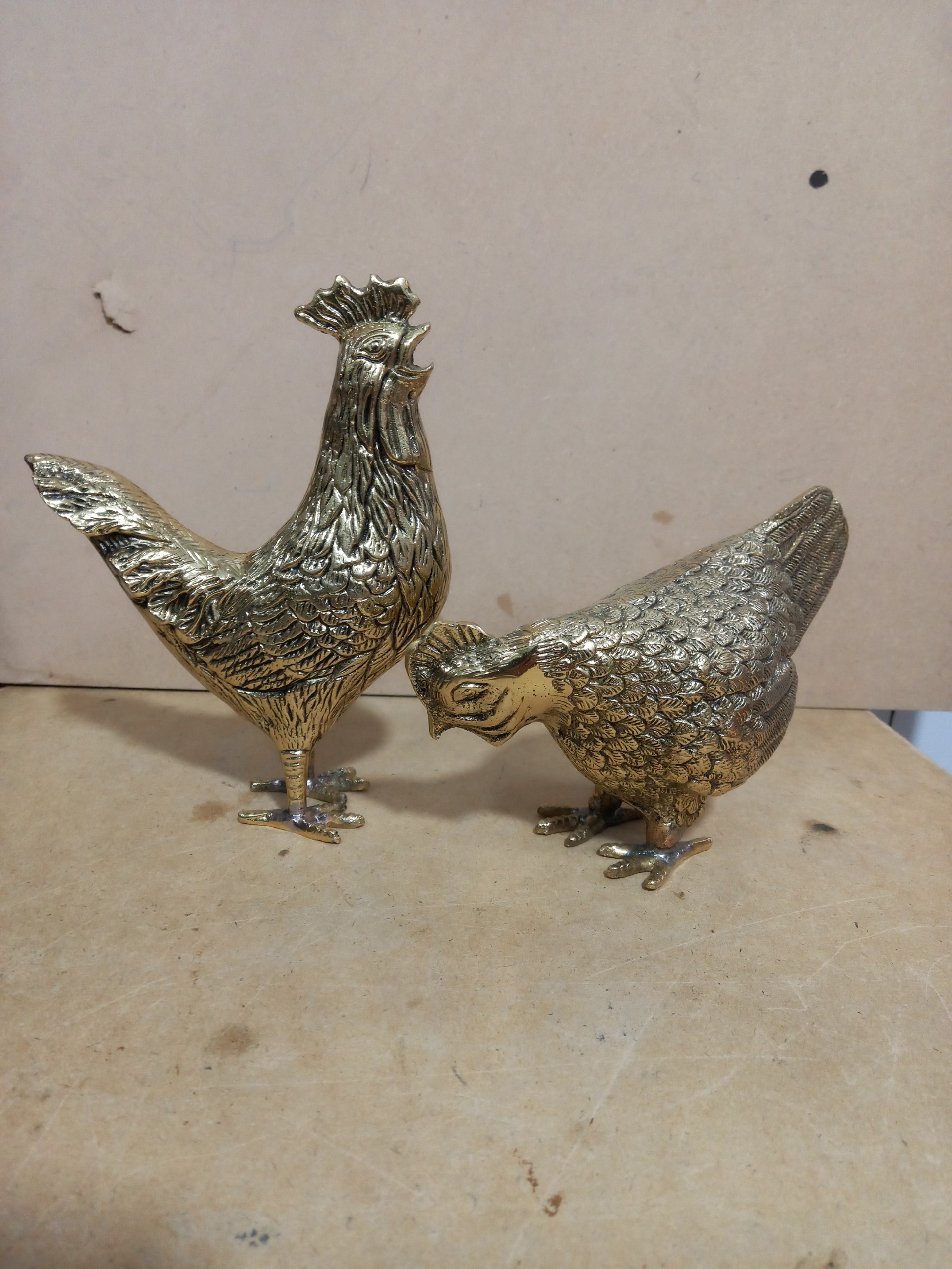 جفت مجسمه برنجی مرغ و خروس باطراحی بینظیر ودرجه1 اندازه خروس 18سانت واندازه مرغ 17سانت هست دکوری وهدیه شیک