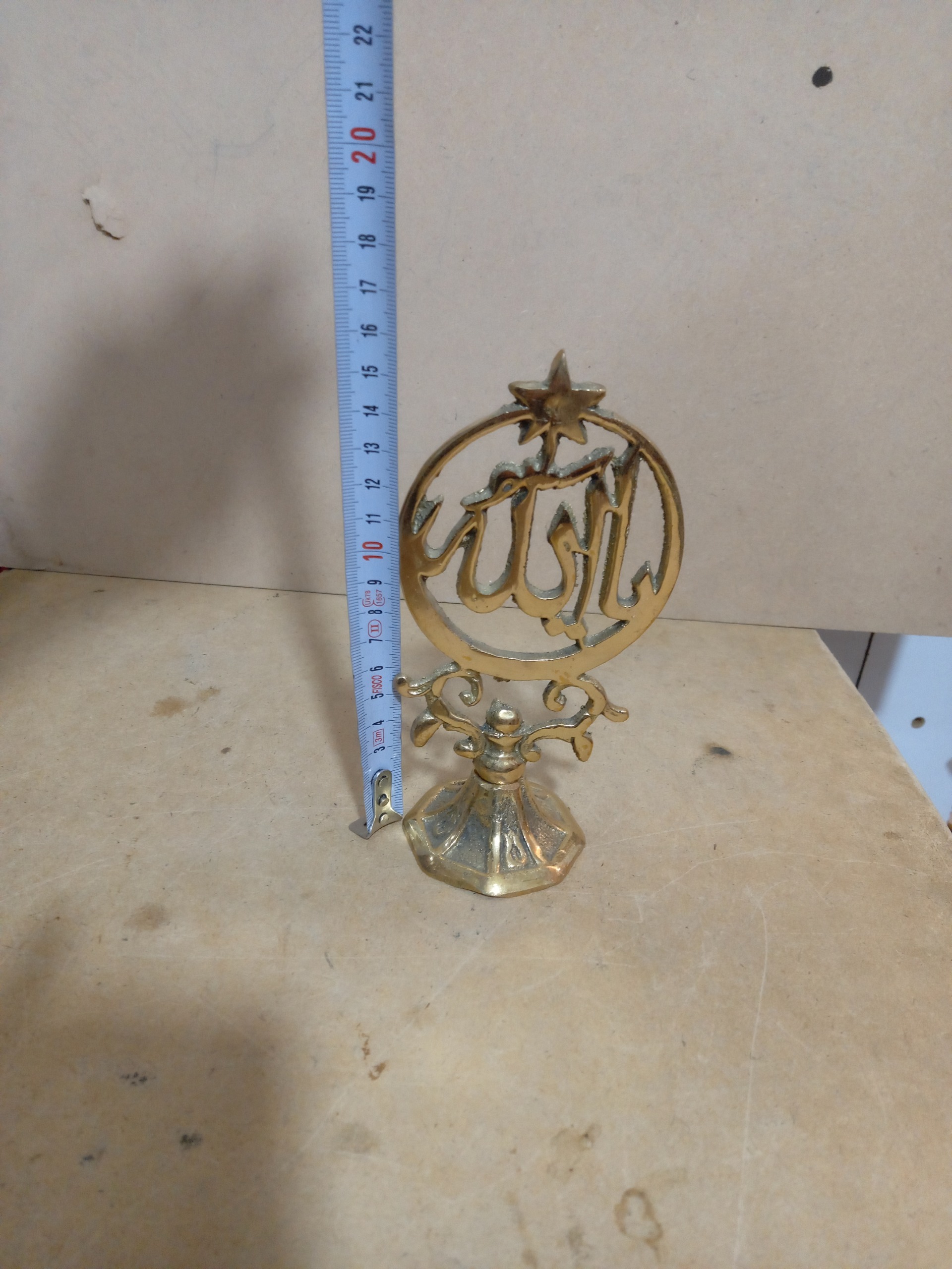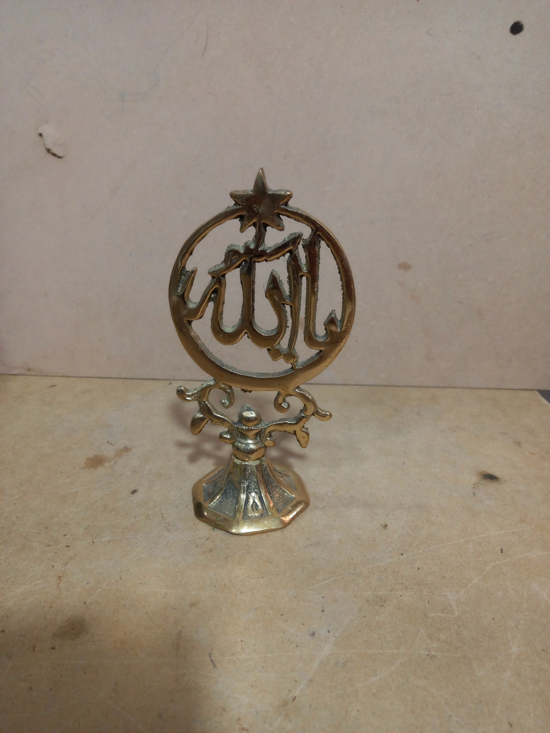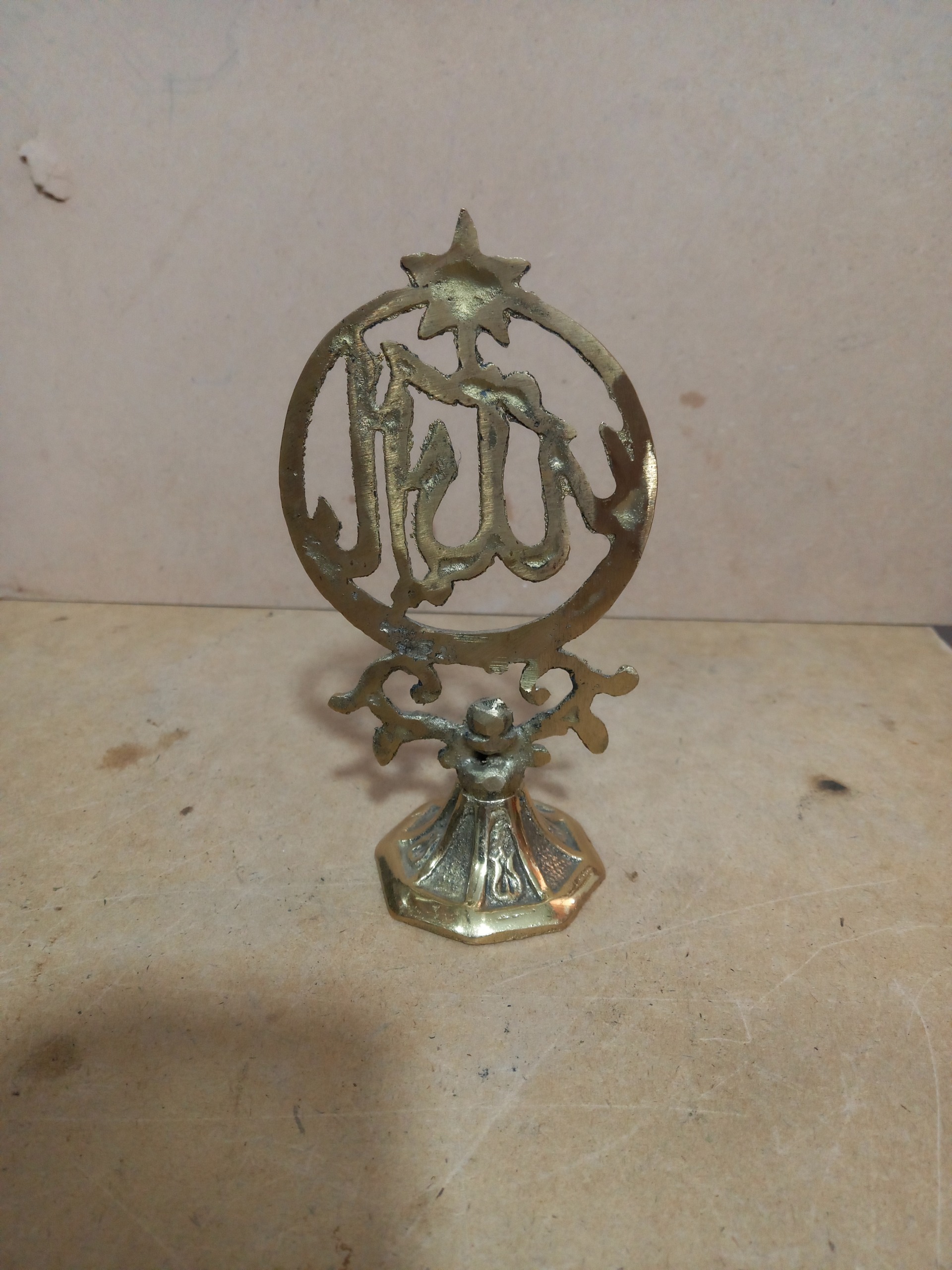 تندیس برنجی نقش الله باطراحی زیبا وکیفیت خوب اندازه 15سانت دکوری وهدیه ماندگار