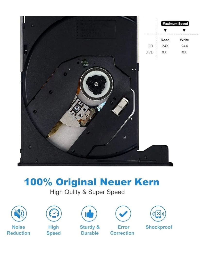 انتقال داده با سرعت 5 گیگابیت بر ثانیه و قابلیت رایت سریع (8X DVD / 24X CD).