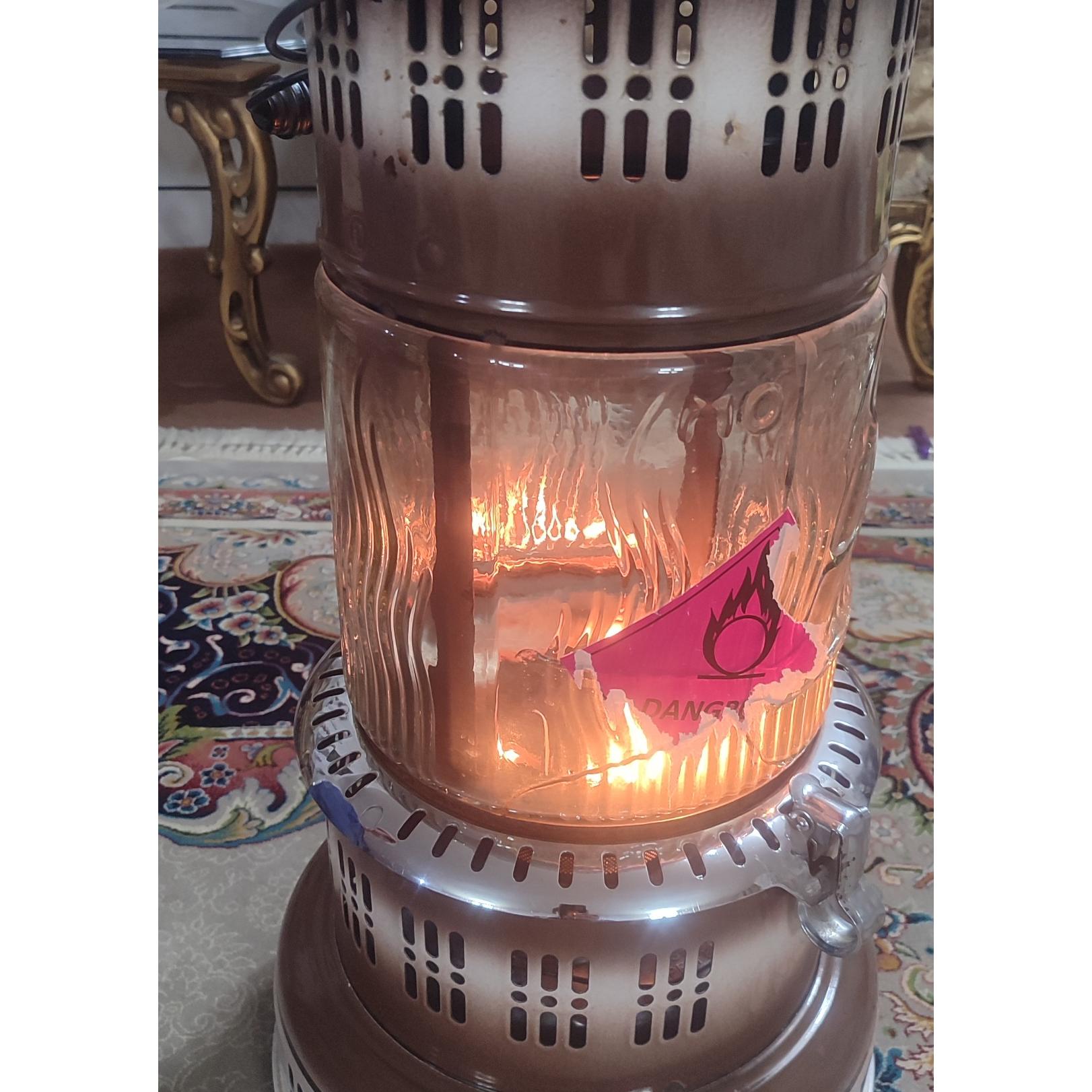 این چراغ امریکایی هست.فقط شیشه اش ی ترک داره که مشکلی انچنانی نداره...من روشن اش کردم طبق تصویر.ولی ابی نمیسوزه .فتیله اش هم تازه عوض شده.