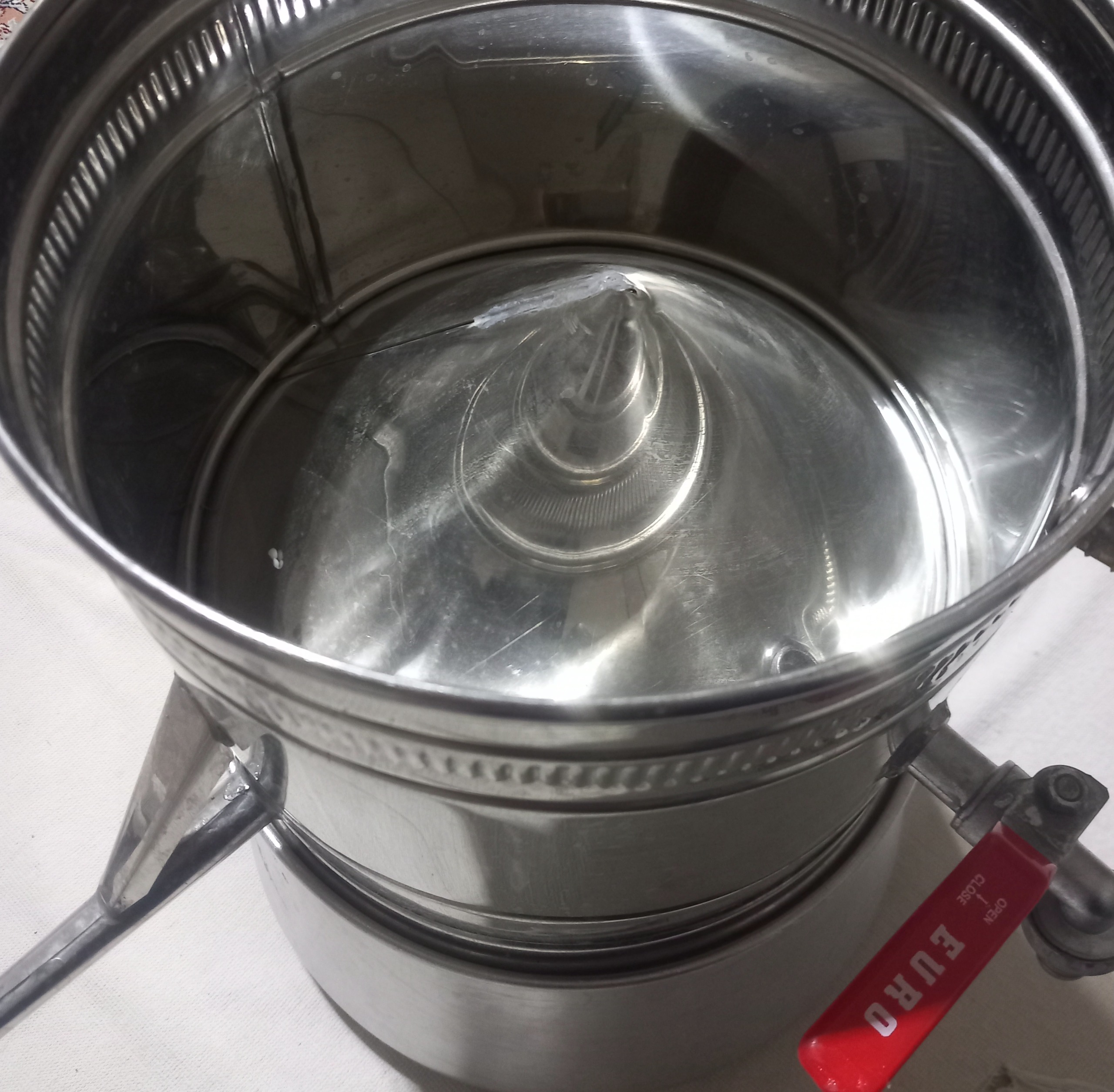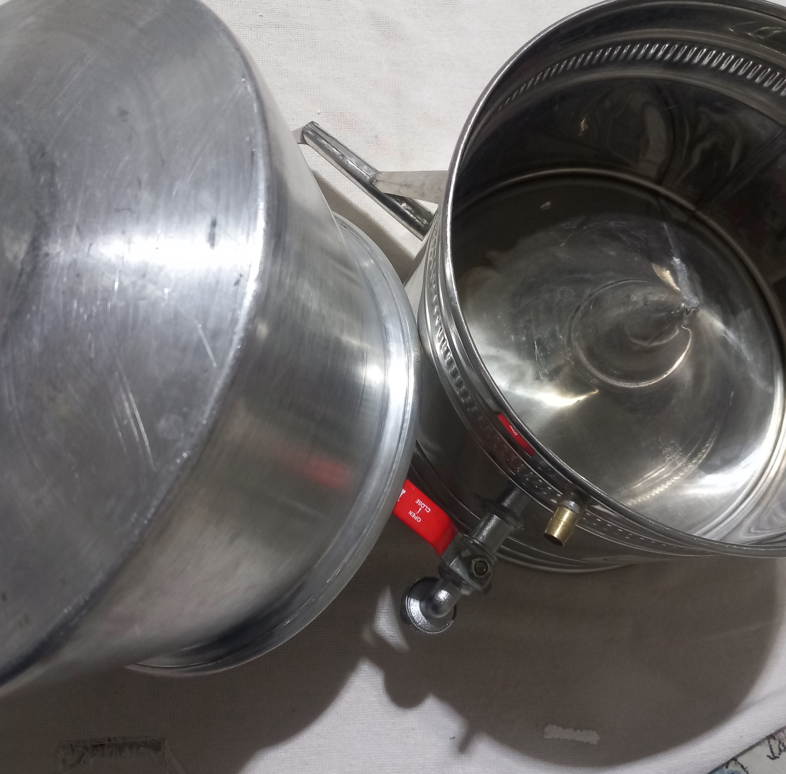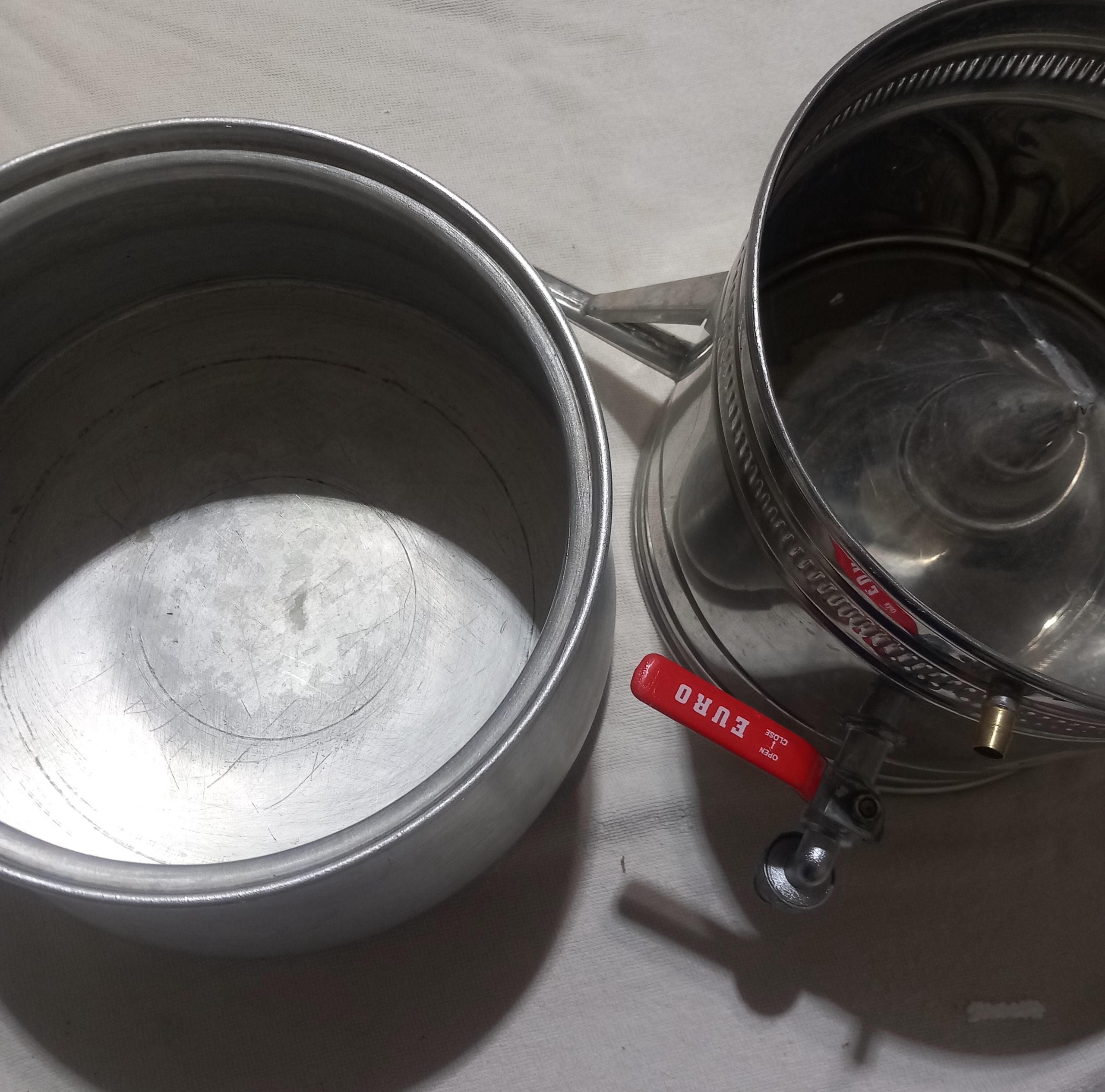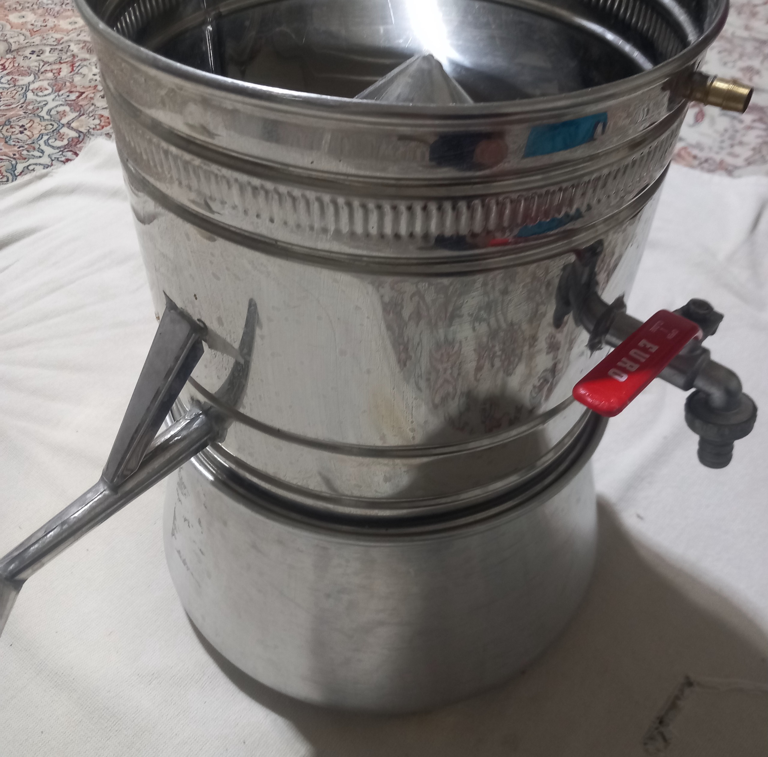 دستگاه تبخیر ویا دیگ بخار کردن گلاب گیر یا به اصطلاح دوستان عزیز آب انگور درست کن داداش اب میوه له شده مثل انگور که چند روزی باید دو دبه درش ببندی تا برسه بعد رسیدن و تولید ....کرد باید صاف ش کنی و آبش داخل دیگ بریزی ودیگ رو اُجاق گاز گذاشتی باید دستگاه تبخیری که شبیه سماور هست رو دیگ میزاری و سریع داخل اون و از یخ یا آب تگری پرمیکنی یخ بهترین گُزینه هست و تقریبا یخ زیادی هم مصرف میشه با جوشیدن داخل دیگ سماور بالاییش شروع به ریختن قطره بخار میوه یا گلاب تون میکنه با شروع عمل ریزش بخار به صورت قطره باید دیگه زیر اجاق گاز باید کم کنی .....خلاصه اینکه خودتون استاد هستین خبره این کار کننده ش میدونه چی هست ؟کالا سنگین و ارسال هم به سختی دوستانی که کالا میشناسن خرید کنند اشتباهی با سماور نشه مرجوعی هم نداریم کالا به تست فنی شده چه جوراّ هم!