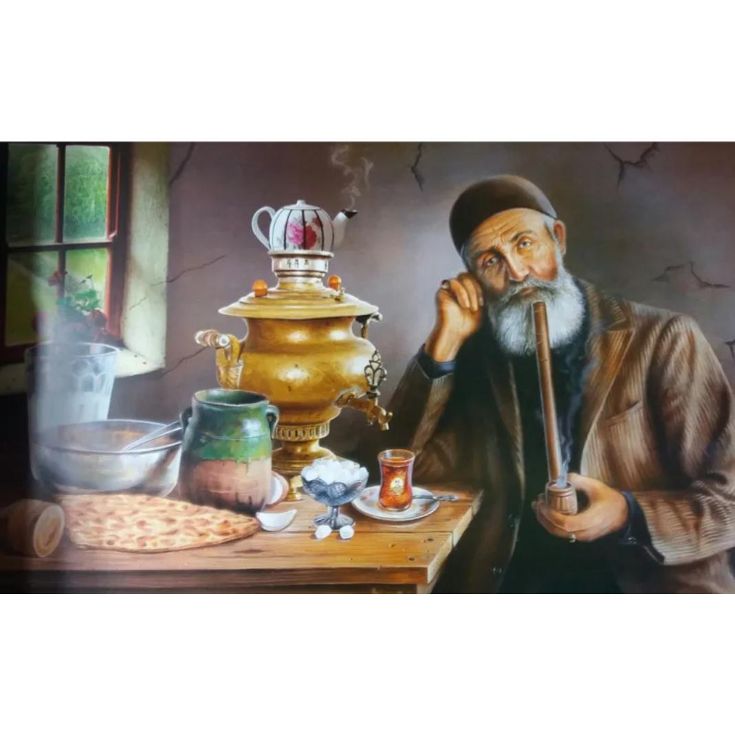پوستر پیرمرد در قهوه خانه همراه با توضیحات