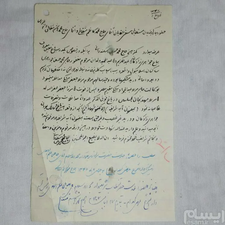 ورقه شهادتنامه، مهر و دستخط برادران تاجر مثقالی