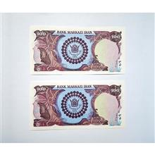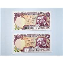 جفت اسکناس صد ریالی دو کله محمدرضا شاه پهلوی