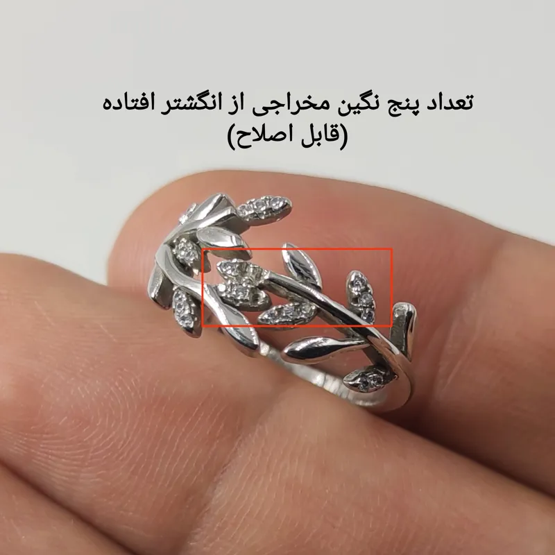 تعداد پنج عدد از نگین های ریز مخراجی آن، افتاده است (مشاهده در عکس دوم، قابل اصلاح)