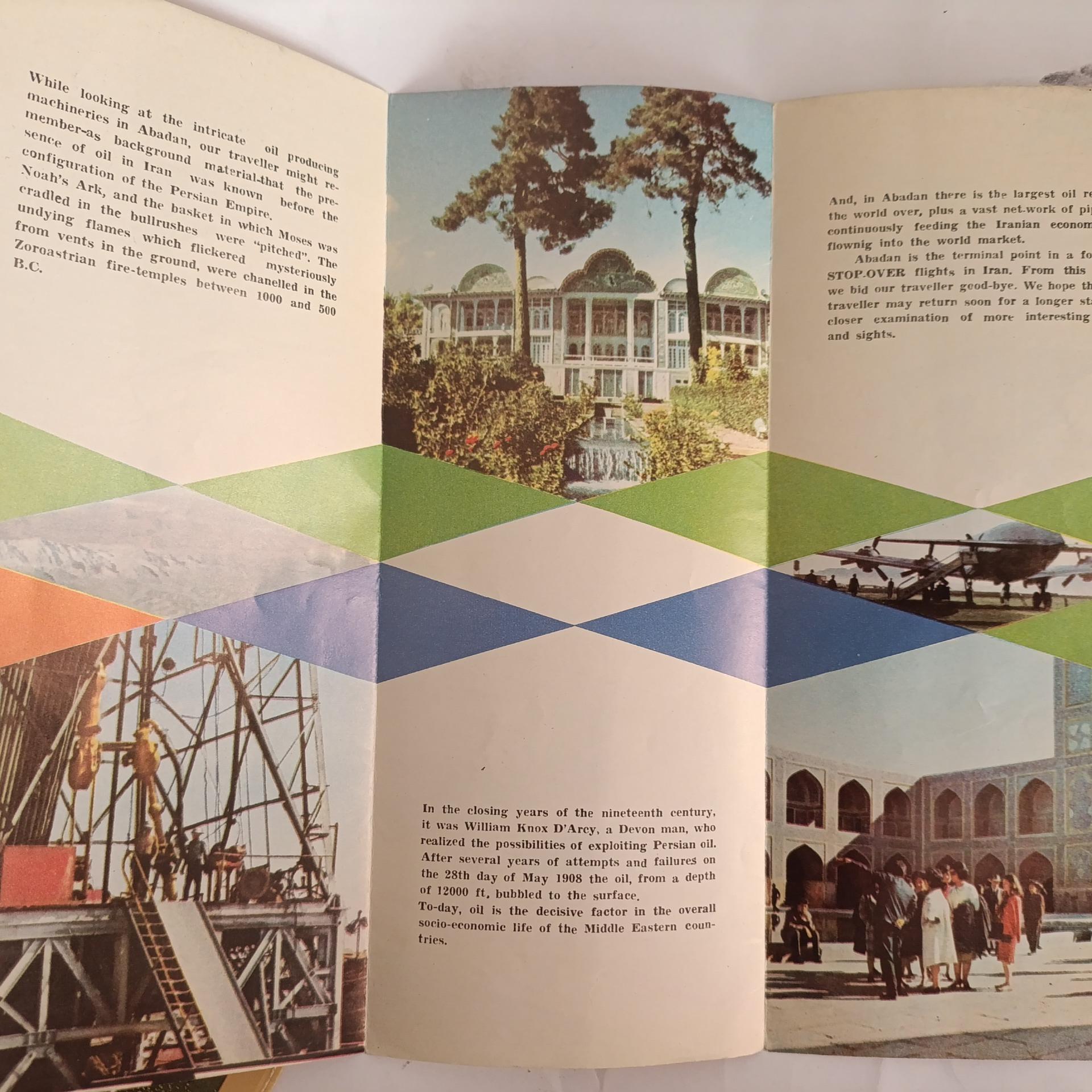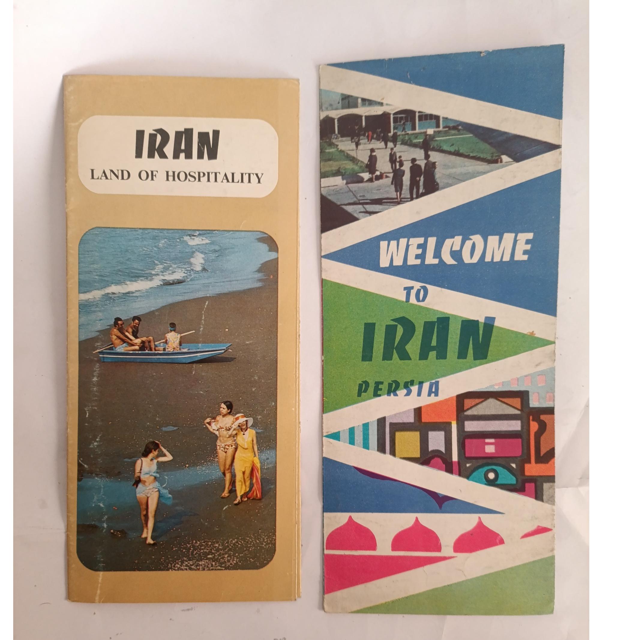 2 عدد بروشور سازمان جلب سیاحان برای دهه 40 که برای معرفی ایران به توریستهای که قصد مسافرت به ایران را داشتند و شناساندن فرهنگ و رسوم ایران به باقی نقاط به چاپ میرسیدند .که بشکل آکاردئونی و تا شده روی هم میباشد و اینکه مسلما مصور بوده و به زبان اصلی میباشد.ابن