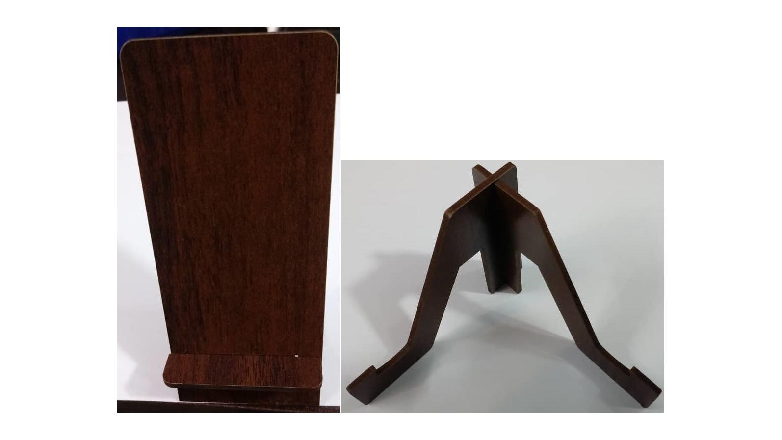 پایه نگهدارنده چوبی یک استند جهت قرار دادن گوشی در حالت های افقی و عمودی است.این نگهدارنده چوبی گوشی موبایل دارای 2 تکه چوب است که توسط شیارها که روی آنها قرار دارند به روی هم قفل می شوند.این نگهدارنده از جنس چوب ام دی اف است و مناسب برای محیطهای اداری و روی میز طراحی شده است.