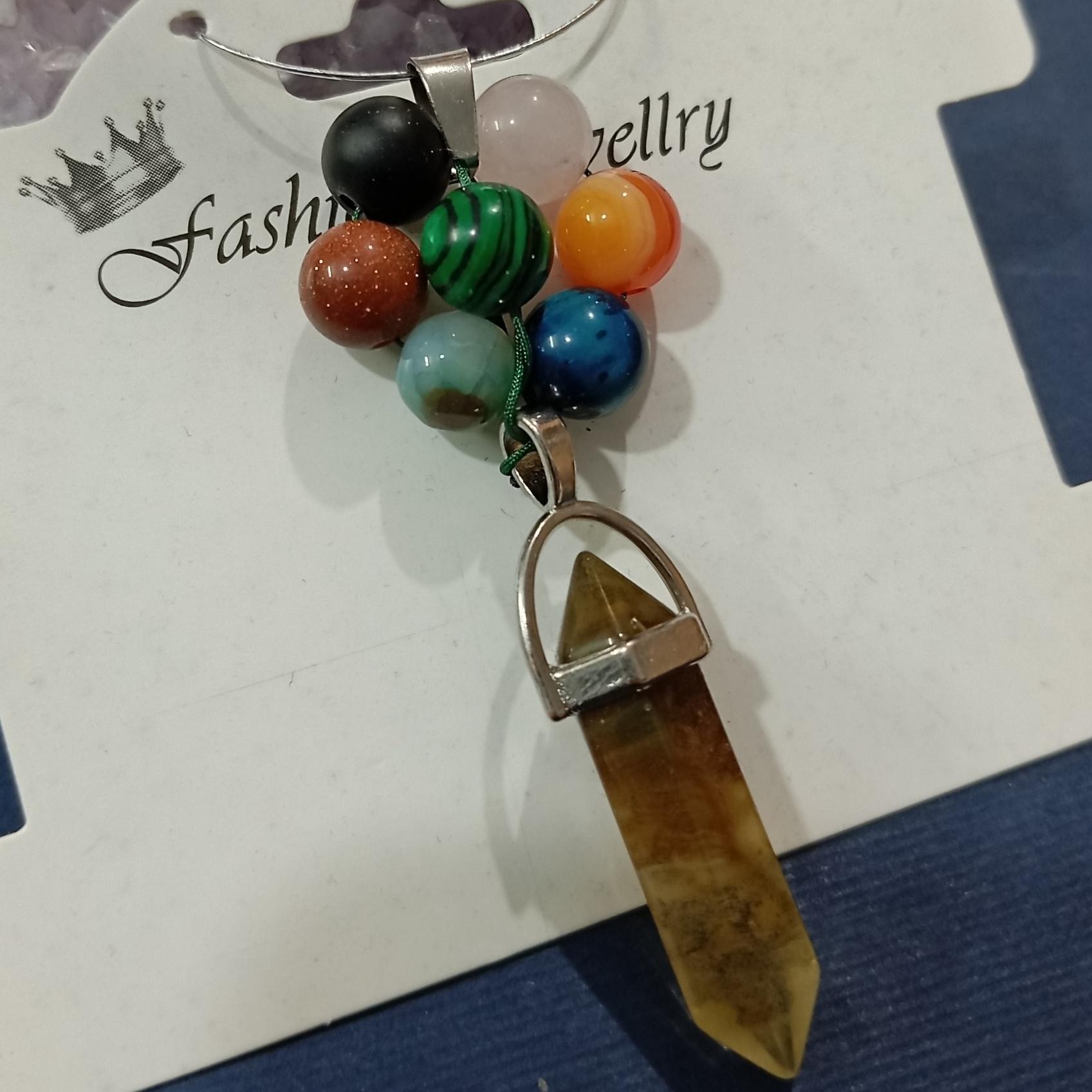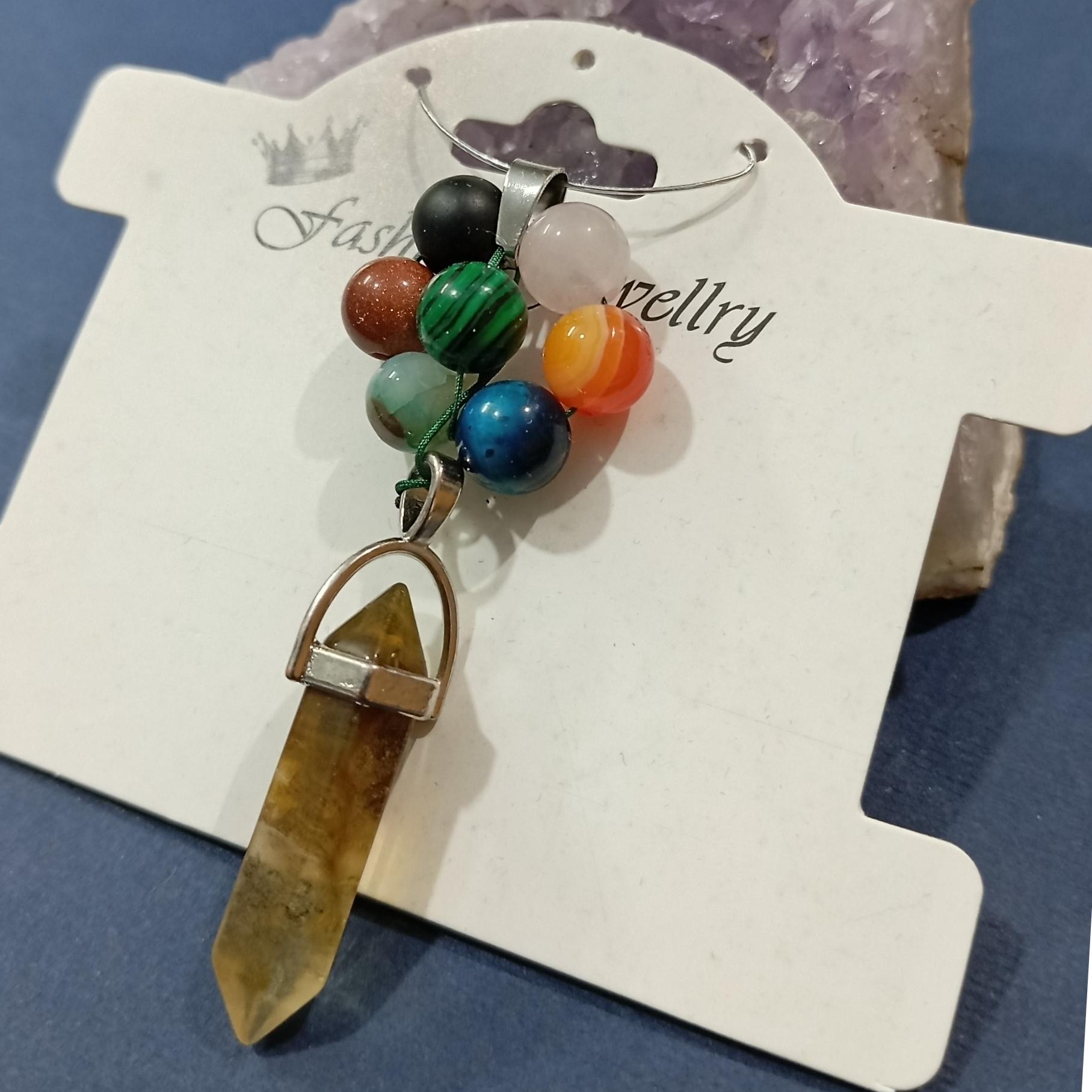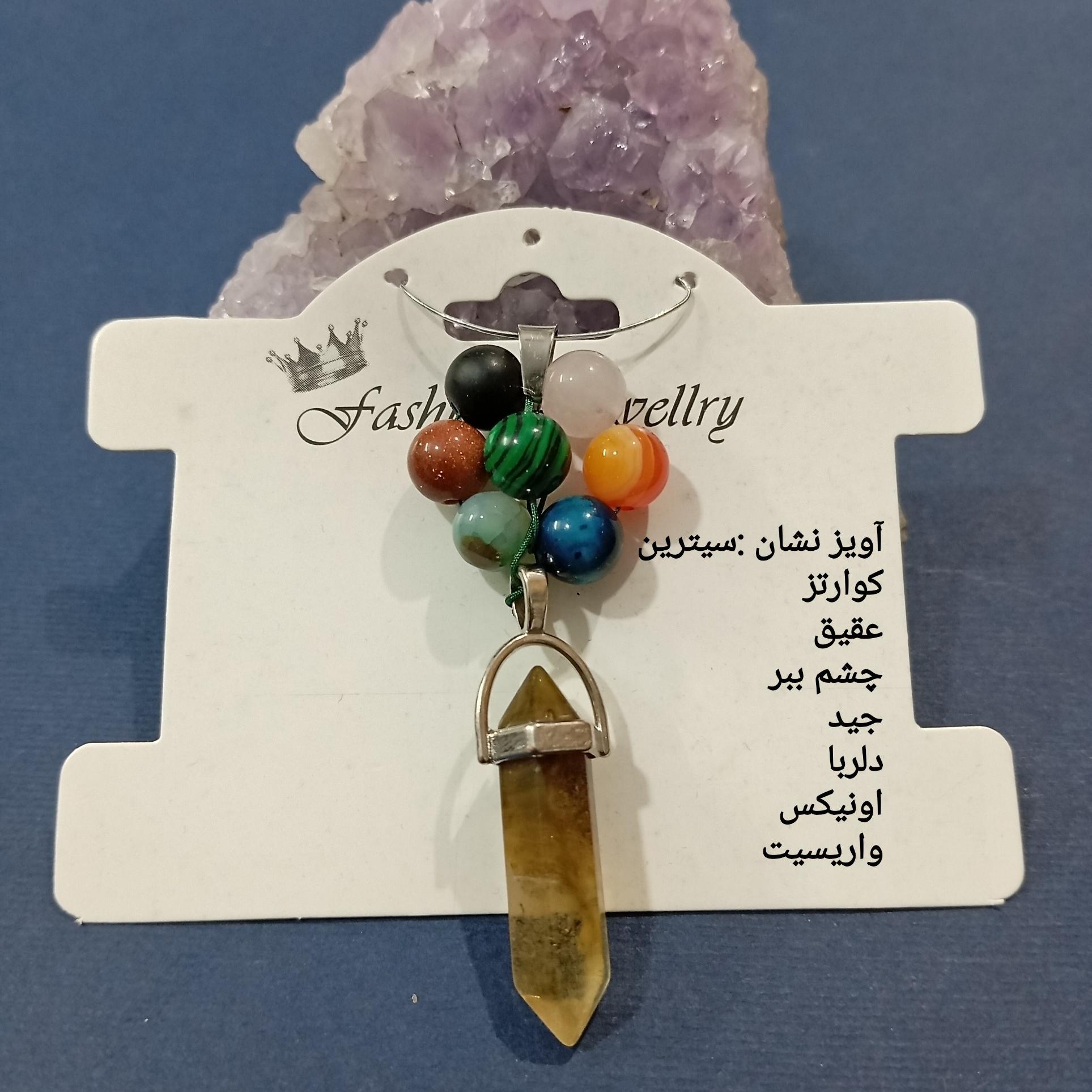 آویز سنگ سیترین با مهره های واریسیت.اونیکس.دلربا.چشم ببر.جید.عقیق.کوارتز