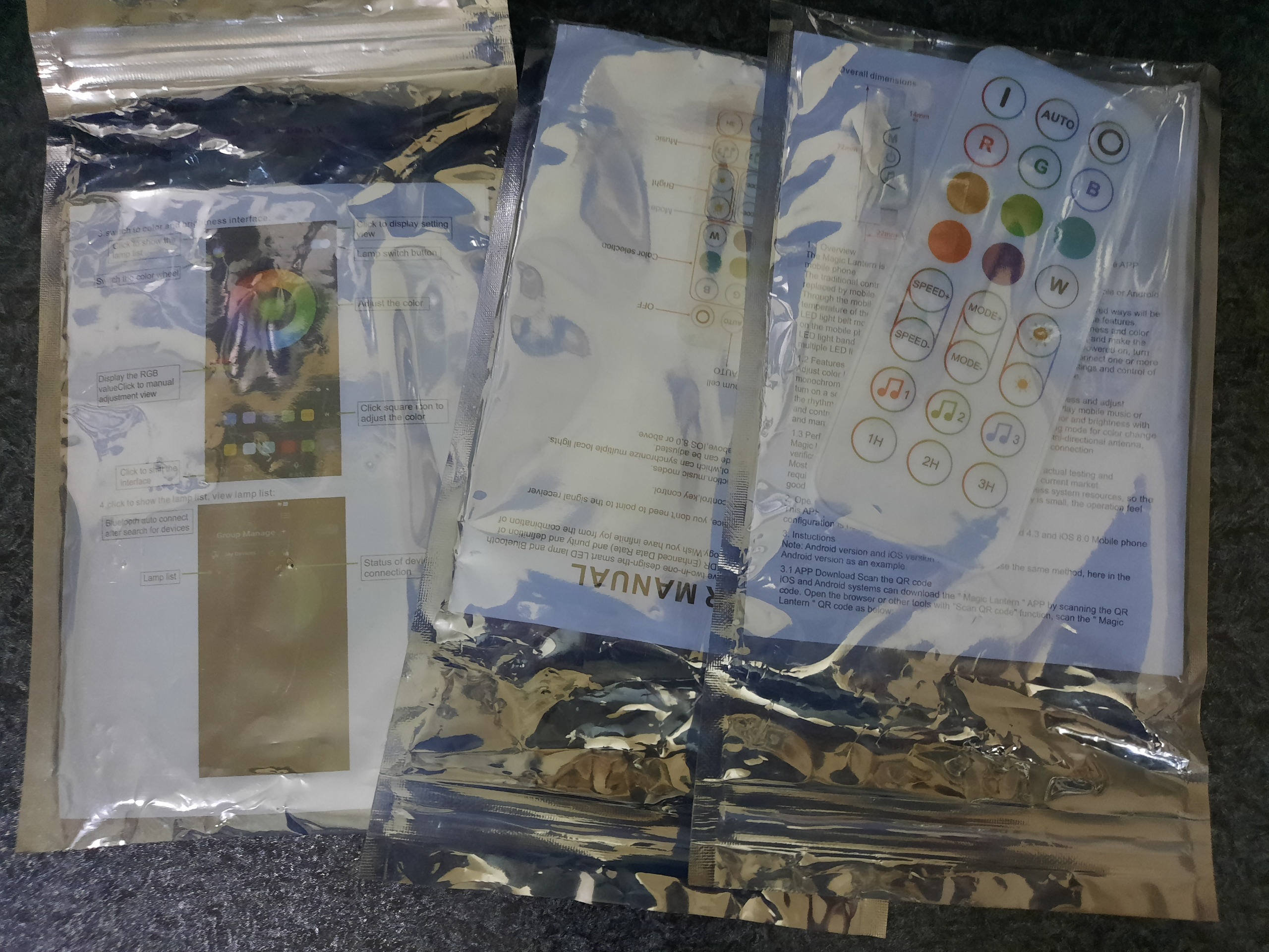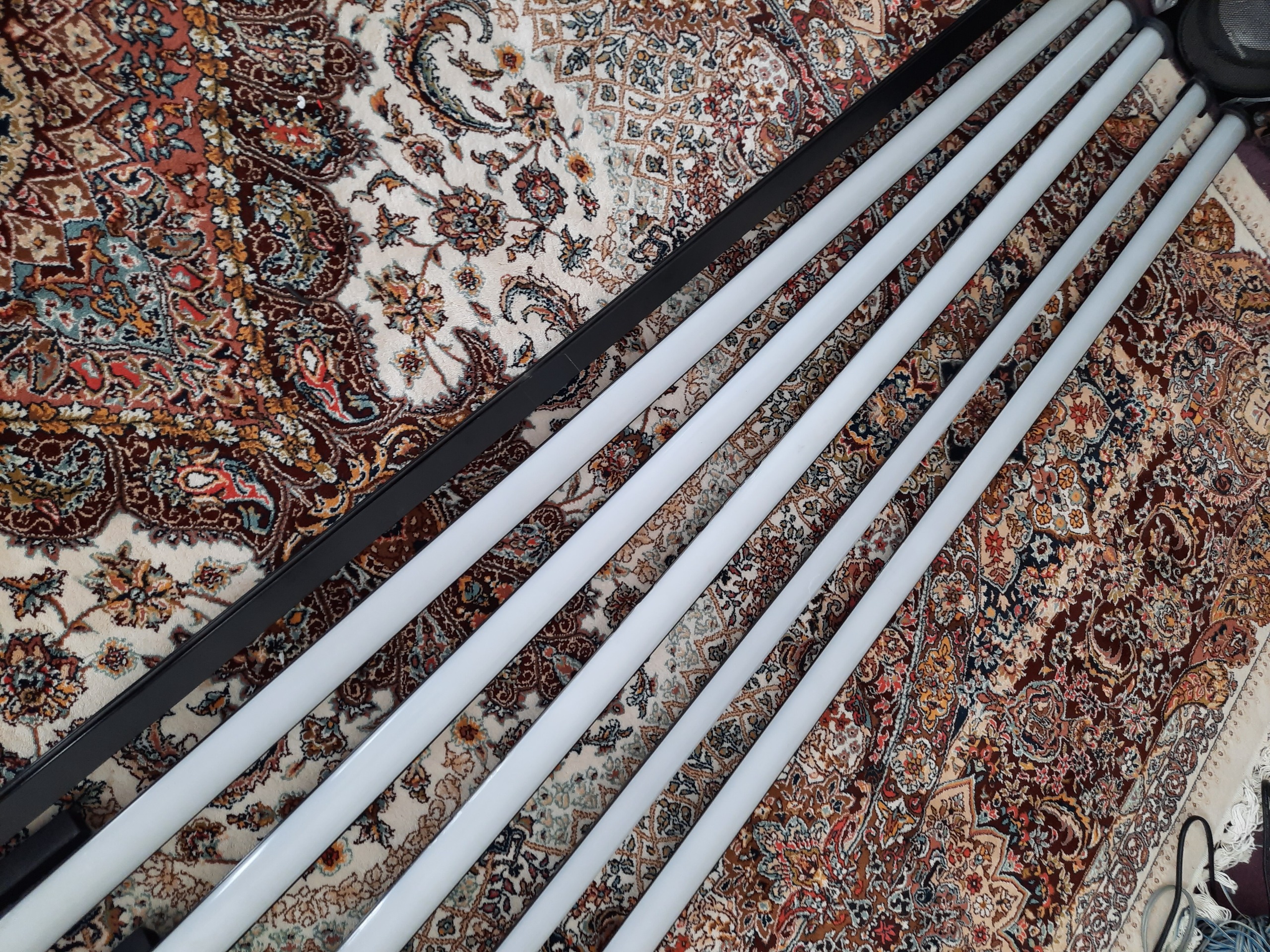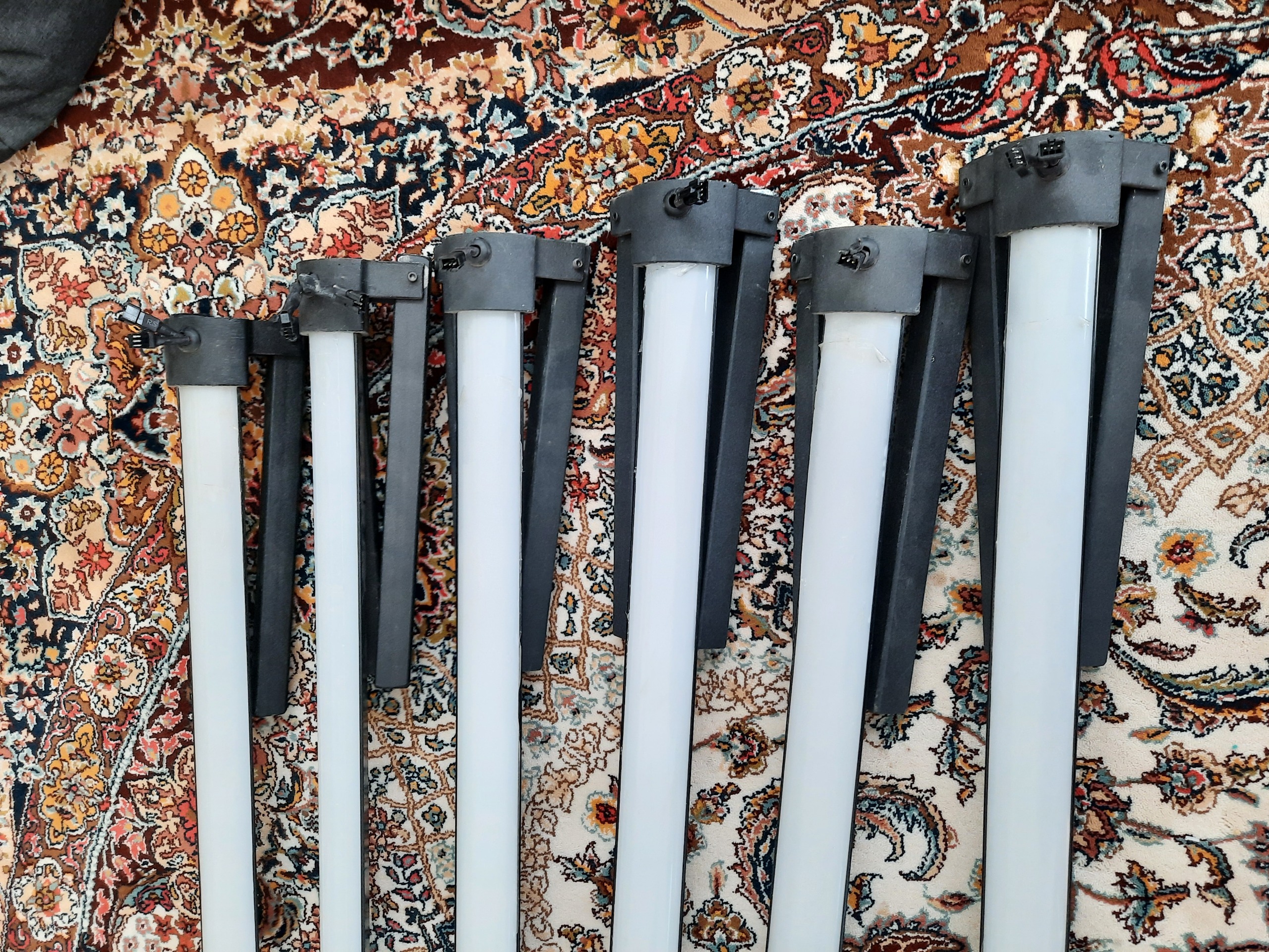 هر جفت شامل : 2 عدد نور ، یک عدد کنترل ، یک عدد آداپتور ، کابل رابط ، قطعه سفید رنگ داخل تصویر که خود اون شامل بلوتوث میکروفون و تنظیمات دستی نور هستش