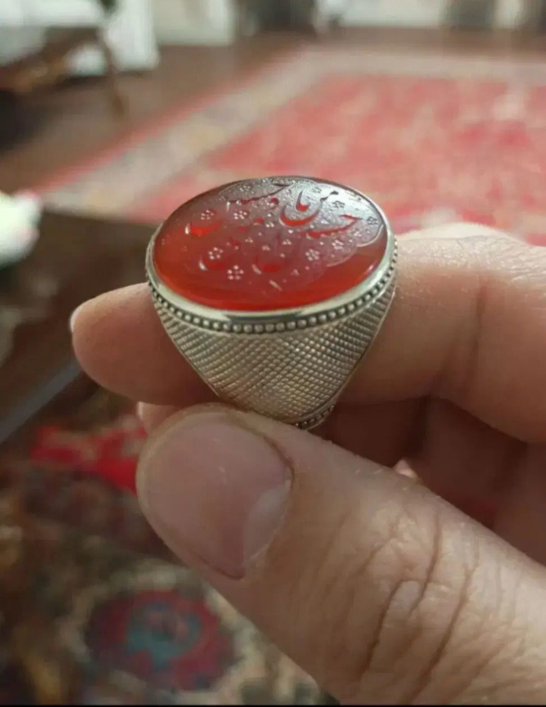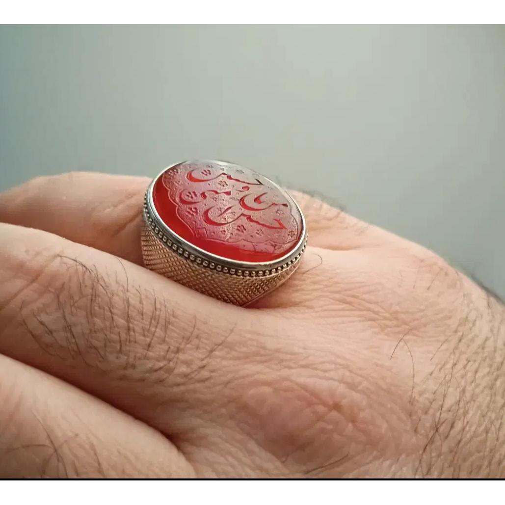 عقیق نفیس یمنی / #نخبه با طبع و رنگ فوق العاده کمیاب و نادر سرخ با طبع و رنگ پخته تراش ثبتی / رمانی تمام آبدار