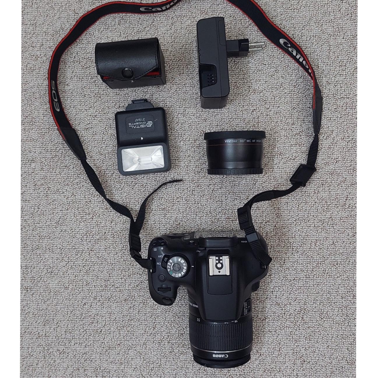 با لنز 18_55، کیف، فلاش، 2 عدد فیلتر 58mm و 2x کانورتور کاملا سالم