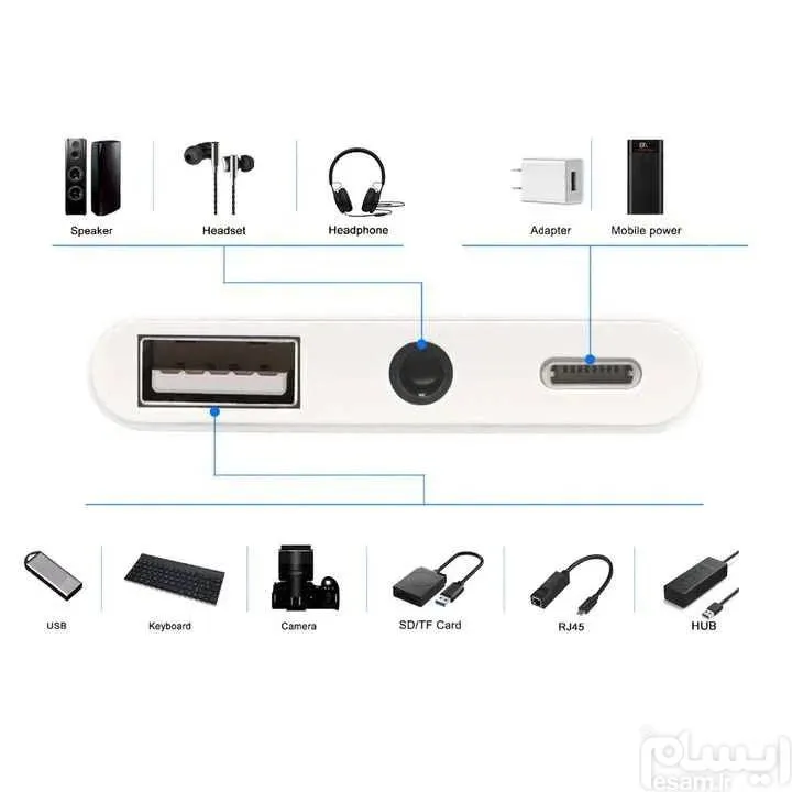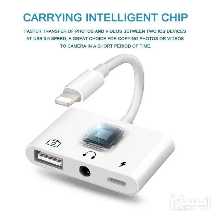 1 عدد آداپتور برای تبدیل دوربین لایتنینگ به USB با شارژ و جک هدفون 3.5 میلی متری