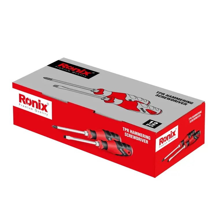 پیچ گوشتی دسته TPR ضربهخور چهارسوی رونیکس مدل RH-2970 با نوک مغناطیسی سختکاریشده و میلهای محکم از جنس آلیاژ کروم وانادیوم تولید میشود تا همراه همیشگی شما بوده و آخرین ابزاری باشد که میخرید!