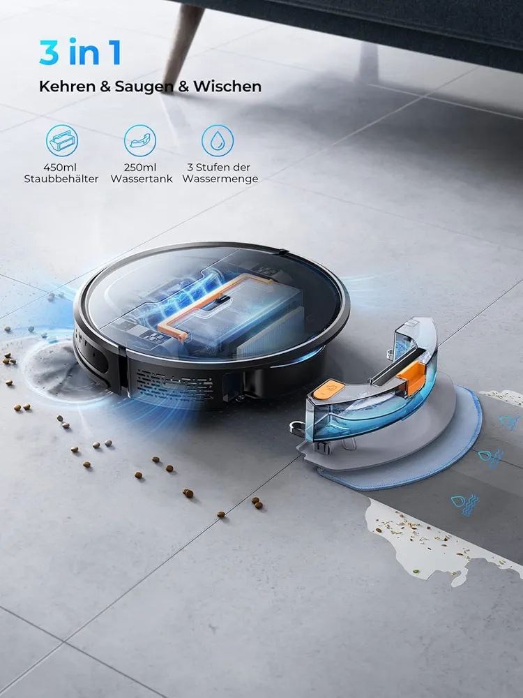 سیستم 2 در 1: جاروبرقی و تیکشی همزمان (Mop Function) برای تمیز کردن کامل سطوح سخت.