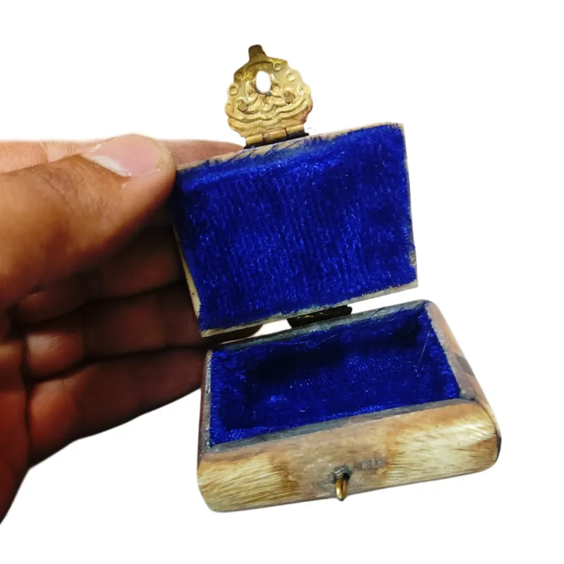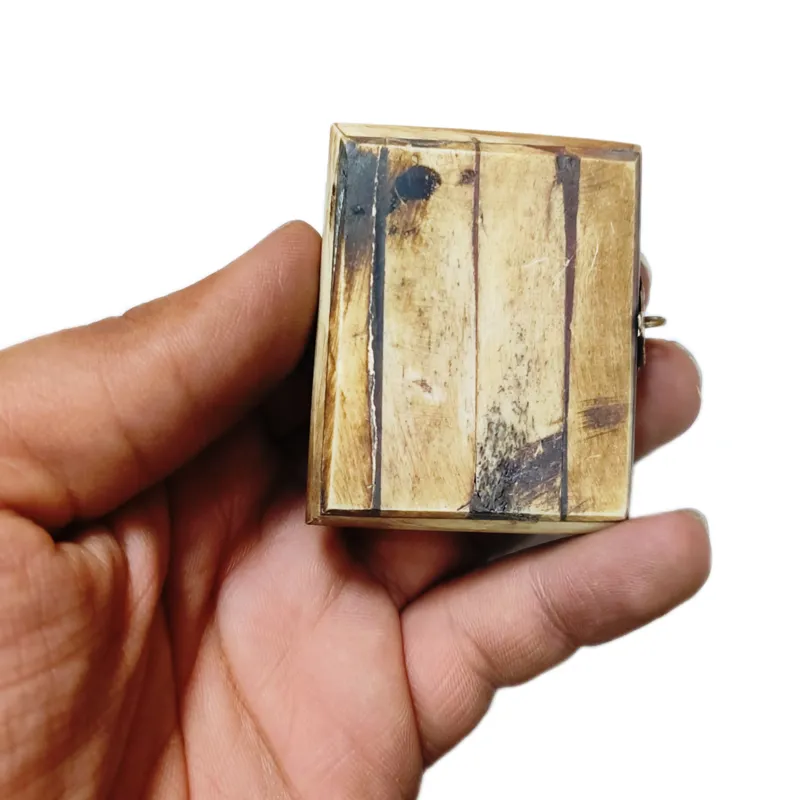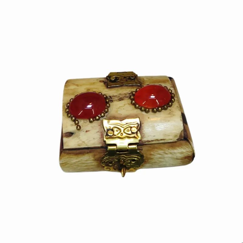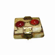 جعبه بسیار زیبا که جنس آن از استخوان است و روی آن هم نگین و طرح های زیبا کار شده است.
