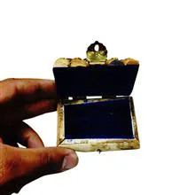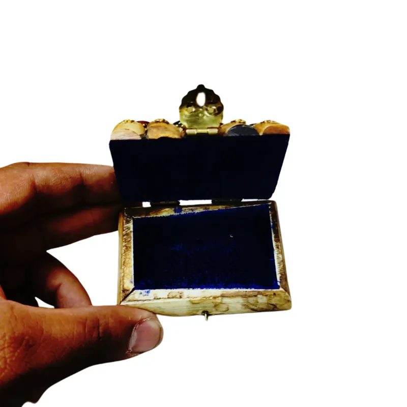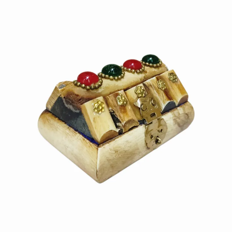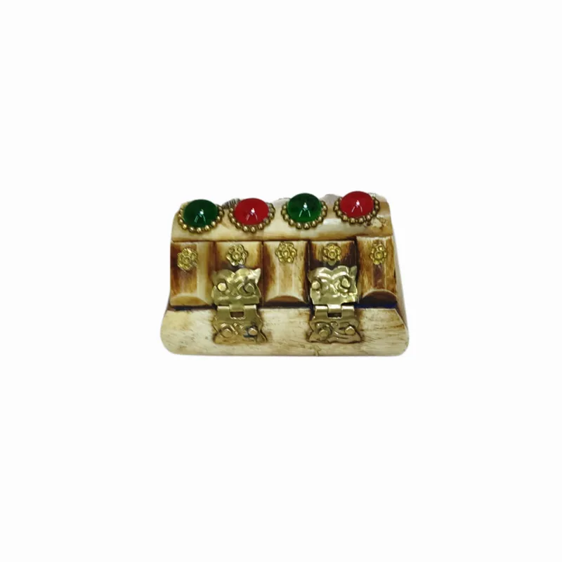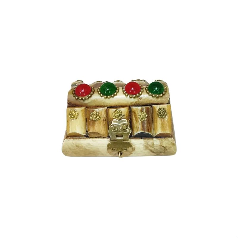 جعبه بسیار زیبا که جنس آن از استخوان است و روی آن هم نگین و طرح های زیبا کار شده است.